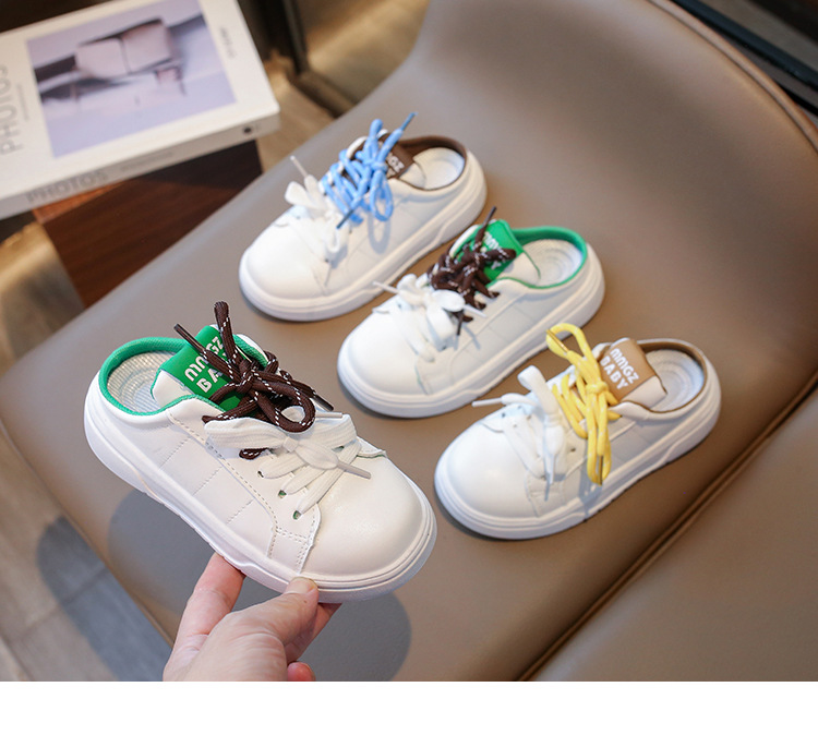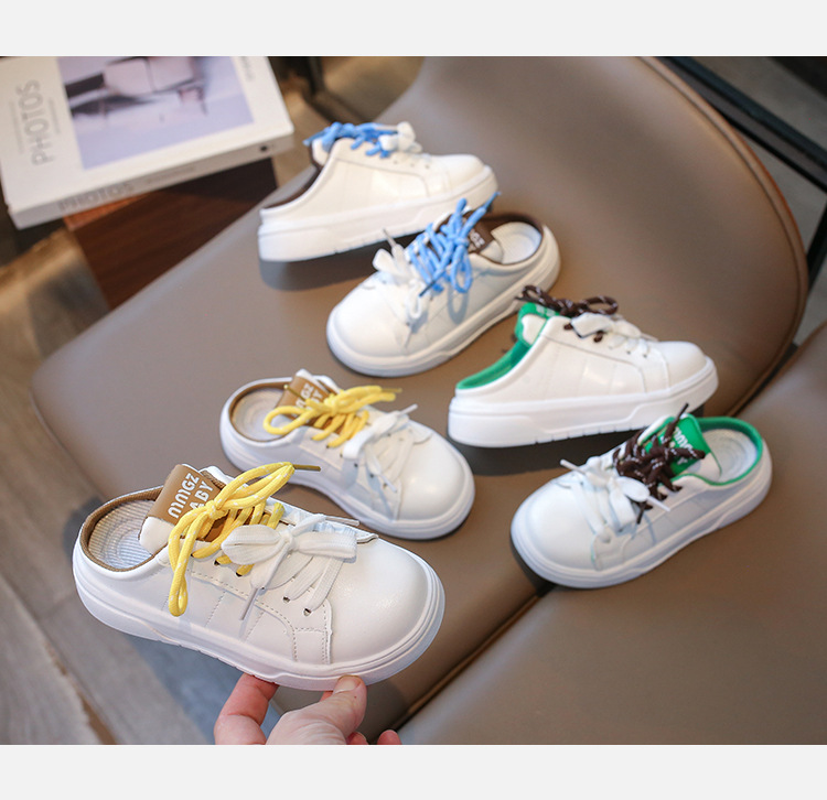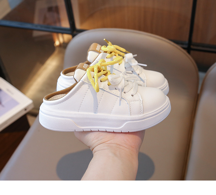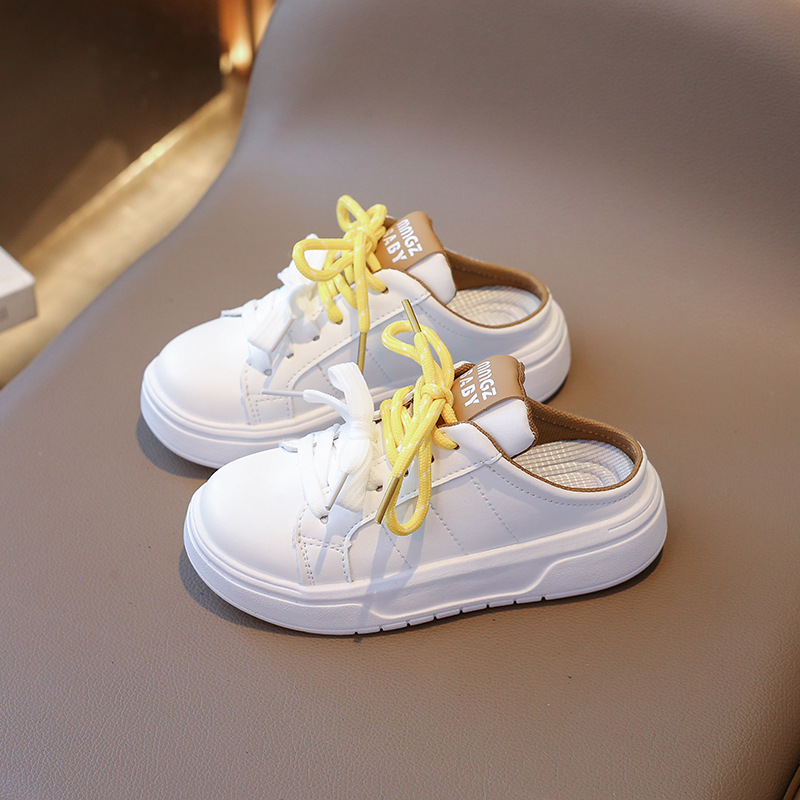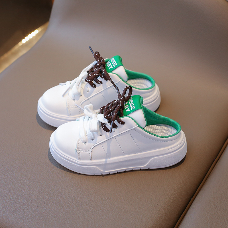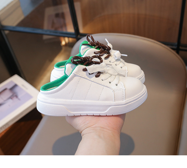 어린이 스포츠 슬리퍼 2024 여름 한국 스타일 소녀 레이스 업 어린 소녀 하프 슬립 온 트렌디를위한 캐주얼 슬립 온 샌들스토어 가기