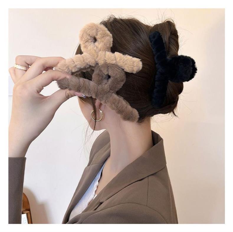 겨울 대형 봉제 클립 여성용 털 머리 머리 상어 클립 머리 볼륨 멀티 헤어 클립 헤드웨어