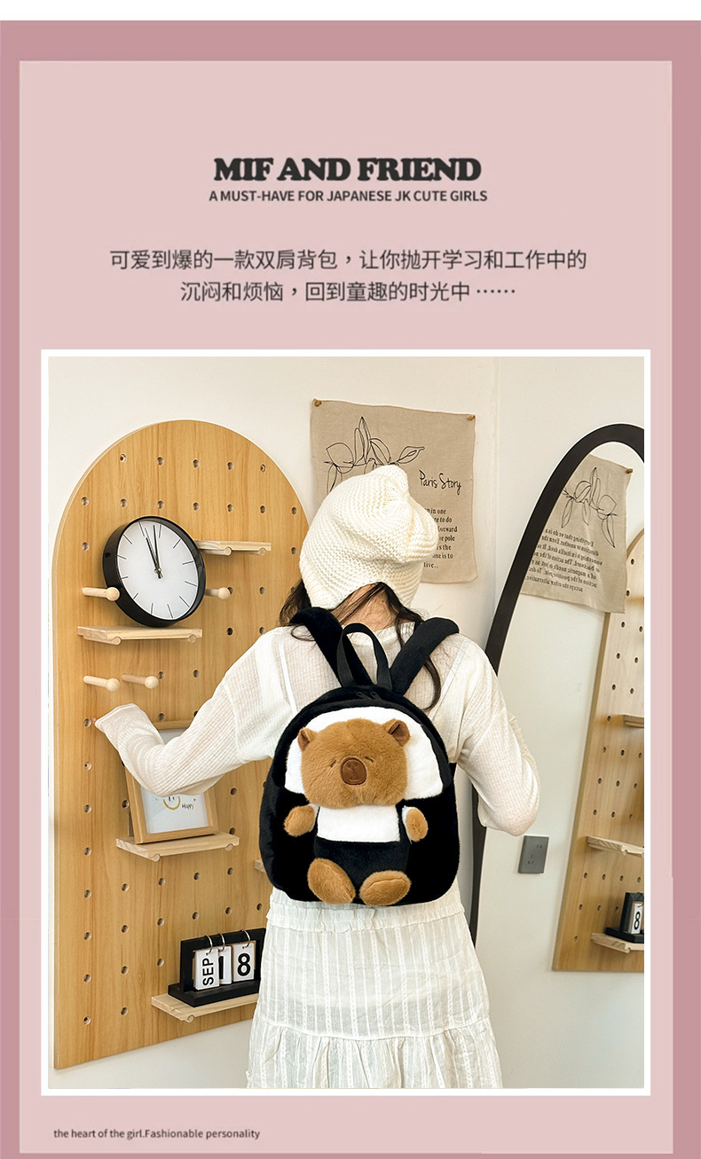 일본 만화 귀여운 카피바라 카피바라 배낭 인형 플러시 가방 대용량 어린이 학생 가방 여성스토어 가기