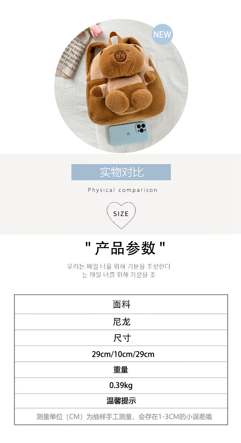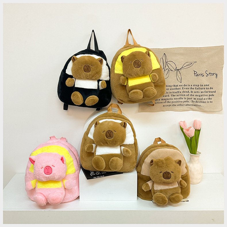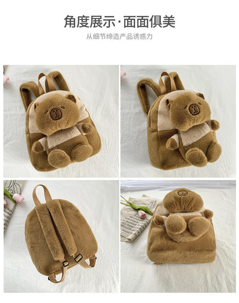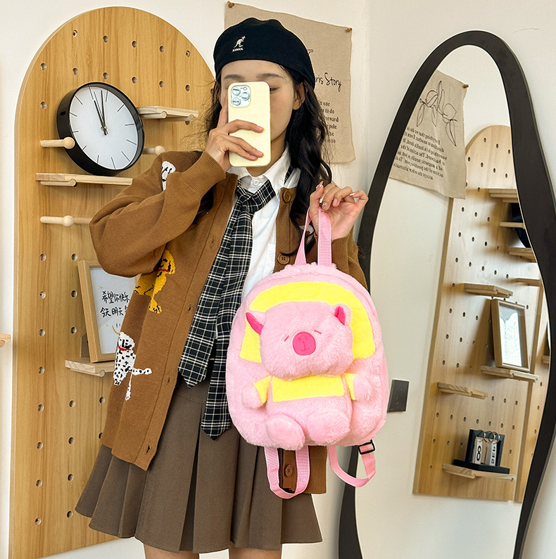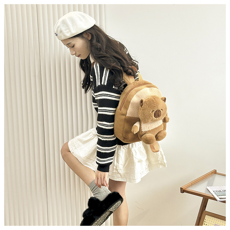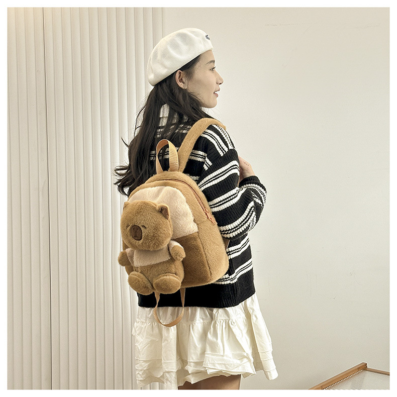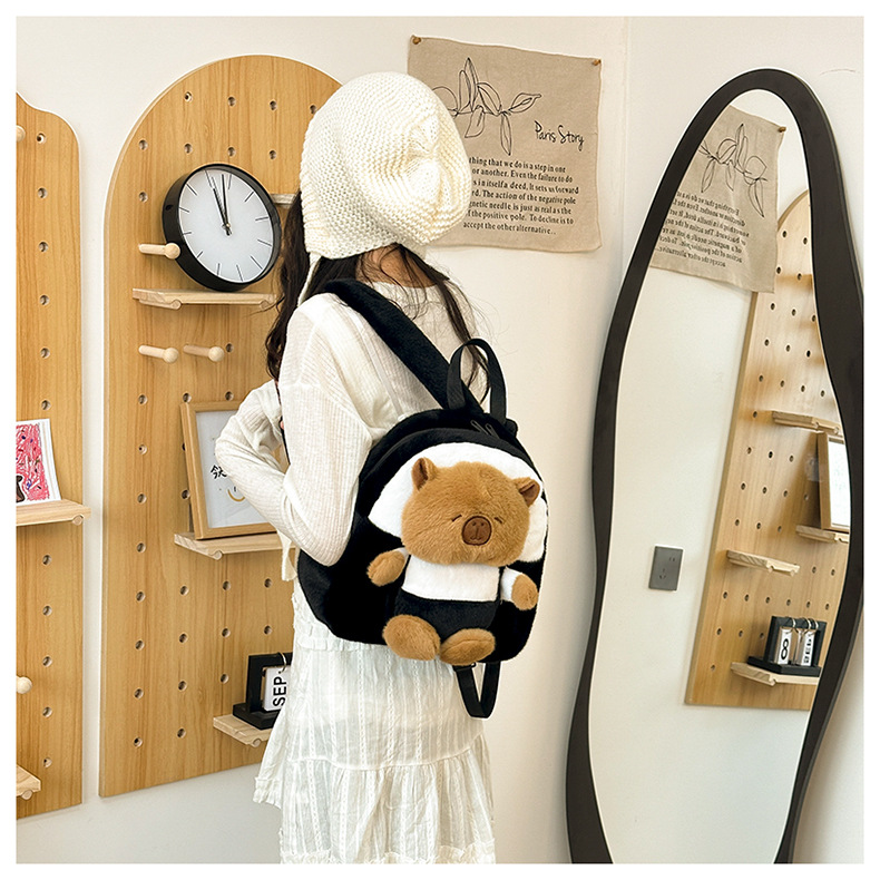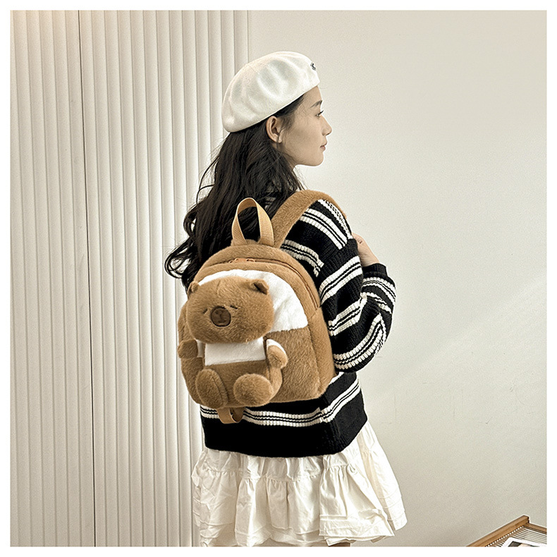 일본 만화 귀여운 카피바라 카피바라 배낭 인형 플러시 가방 대용량 어린이 학생 가방 여성