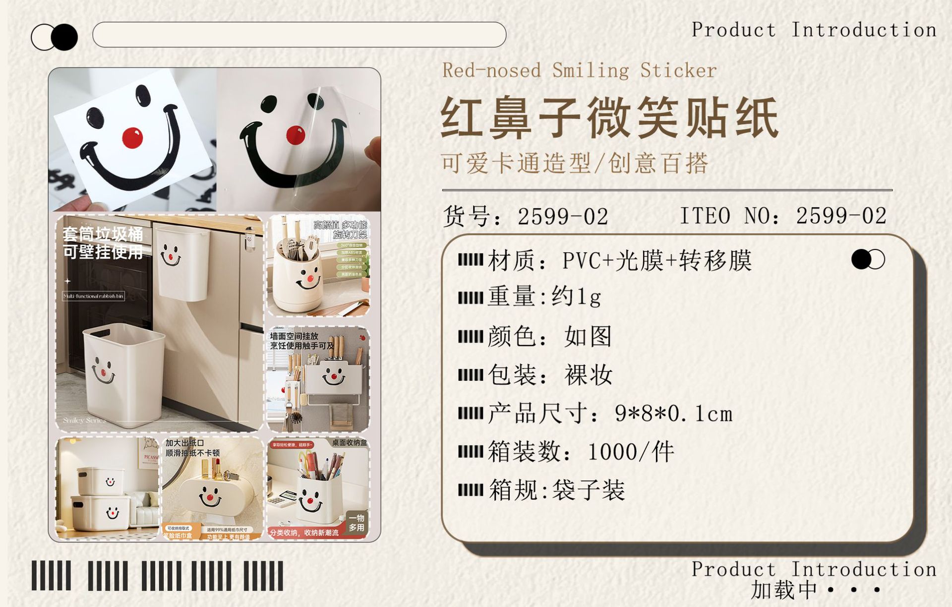 ZT2599 빨간 코 스마일 스티커 휴지통 저장 상자 창조적 인 스티커 도파민 사이버 레드 만화 표현 스티커스토어 가기