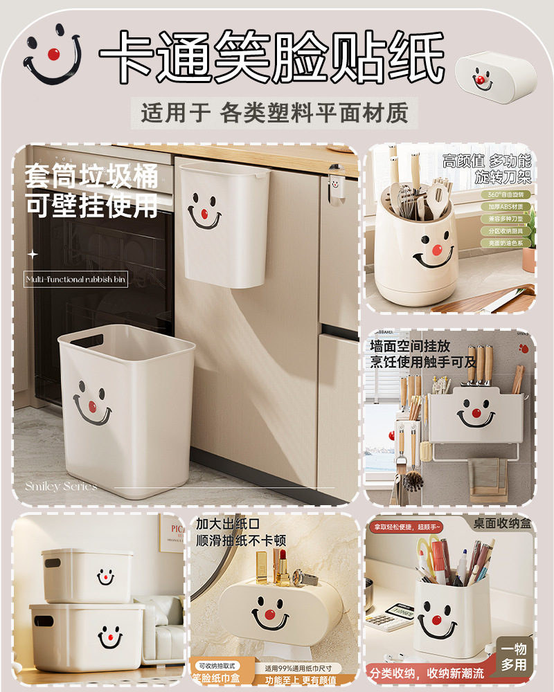 ZT2599 빨간 코 스마일 스티커 휴지통 저장 상자 창조적 인 스티커 도파민 사이버 레드 만화 표현 스티커
