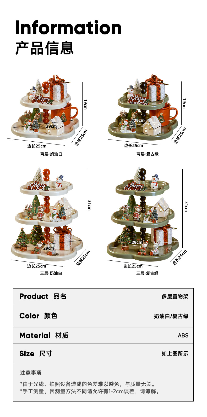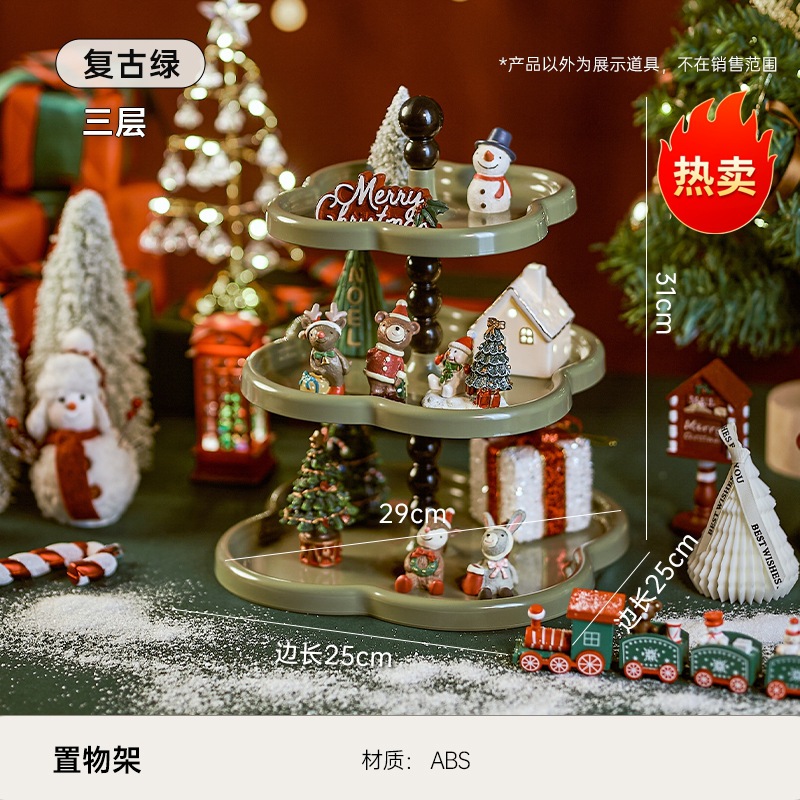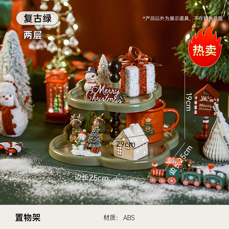 크리스마스 장식 레이어드 트레이 거실 침실 라이트 럭셔리 꽃 수납 선반 레트로 스타일 현관 장식품