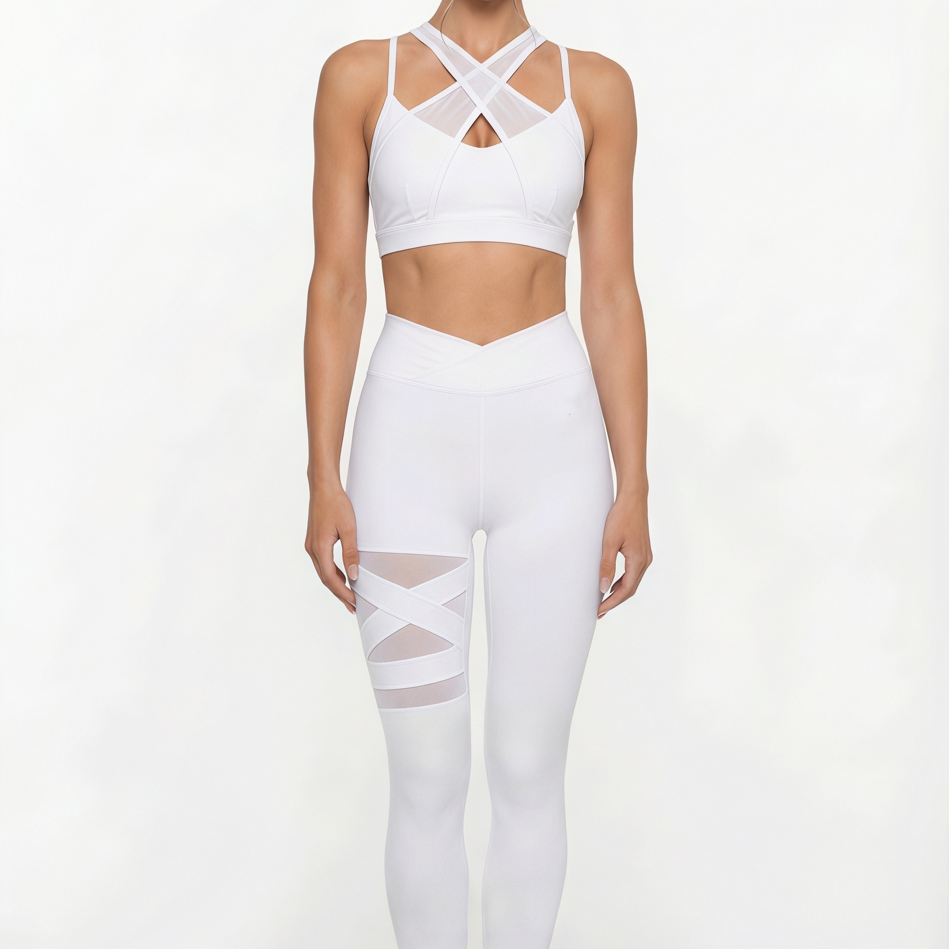 크로스보더 메쉬 스포츠 브라 세트 섹시 이너웨어 피트니스 사이클링 스포츠웨어 필라테스 요가복 베스트 스타일