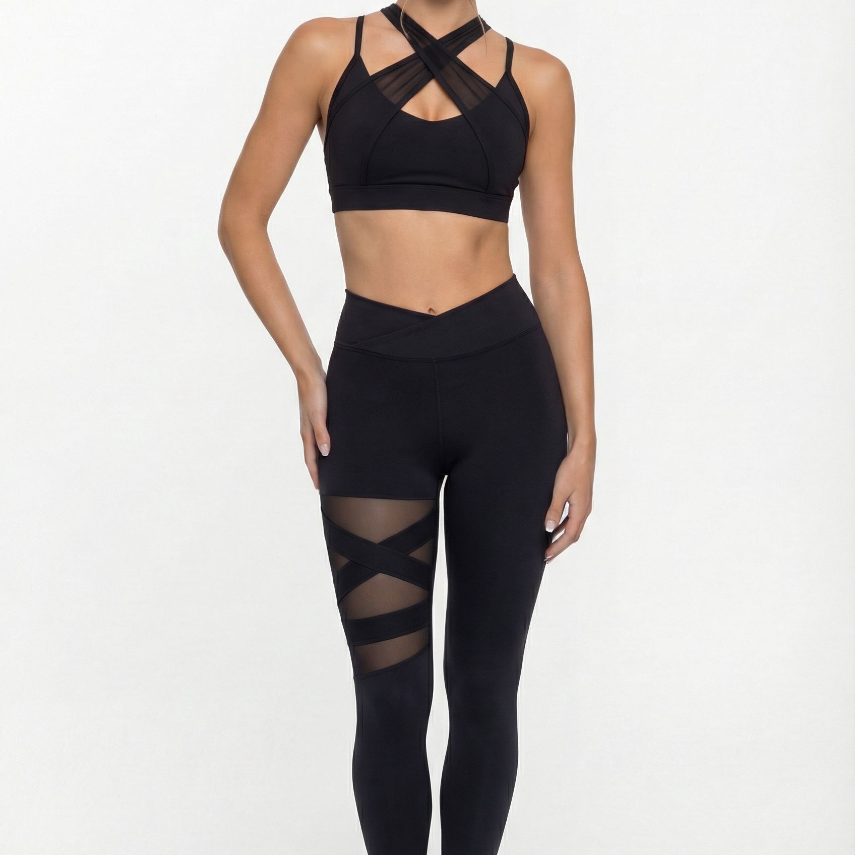 크로스보더 메쉬 스포츠 브라 세트 섹시 이너웨어 피트니스 사이클링 스포츠웨어 필라테스 요가복 베스트 스타일스토어 가기