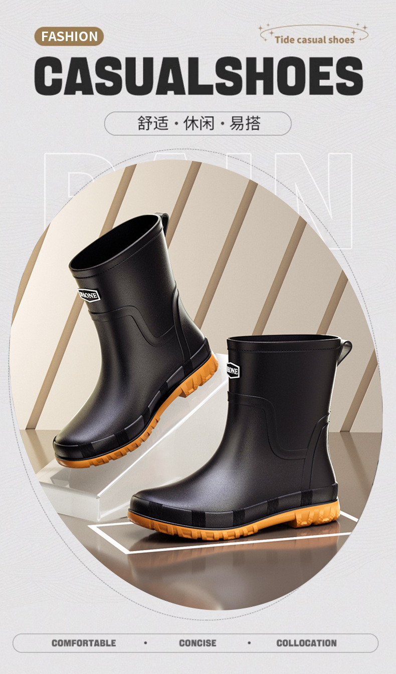 겨울 따뜻한 남성 고무 신발 영국 방수 서랍 비 신발 중간 배럴 야외 패션 벨트 고무 신발 미끄럼 방지 낚시 신발