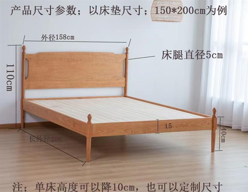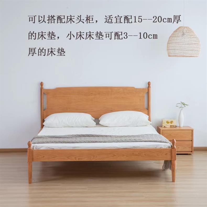 北美黑胡桃实木复古床现代简约樱桃木原木卧室小户型简约双人大床