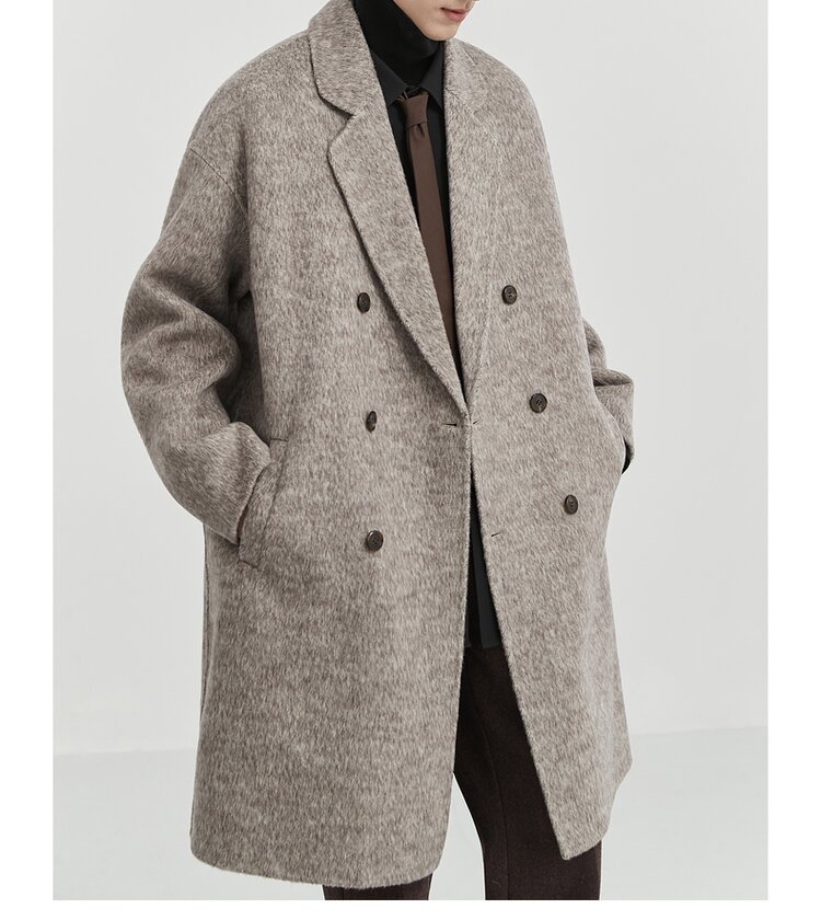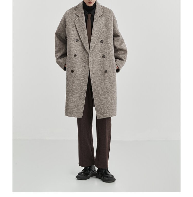 디자인감 있는 양면 울 코트 남성용 중간 길이 겨울 신상품 한국 스타일 울 코트