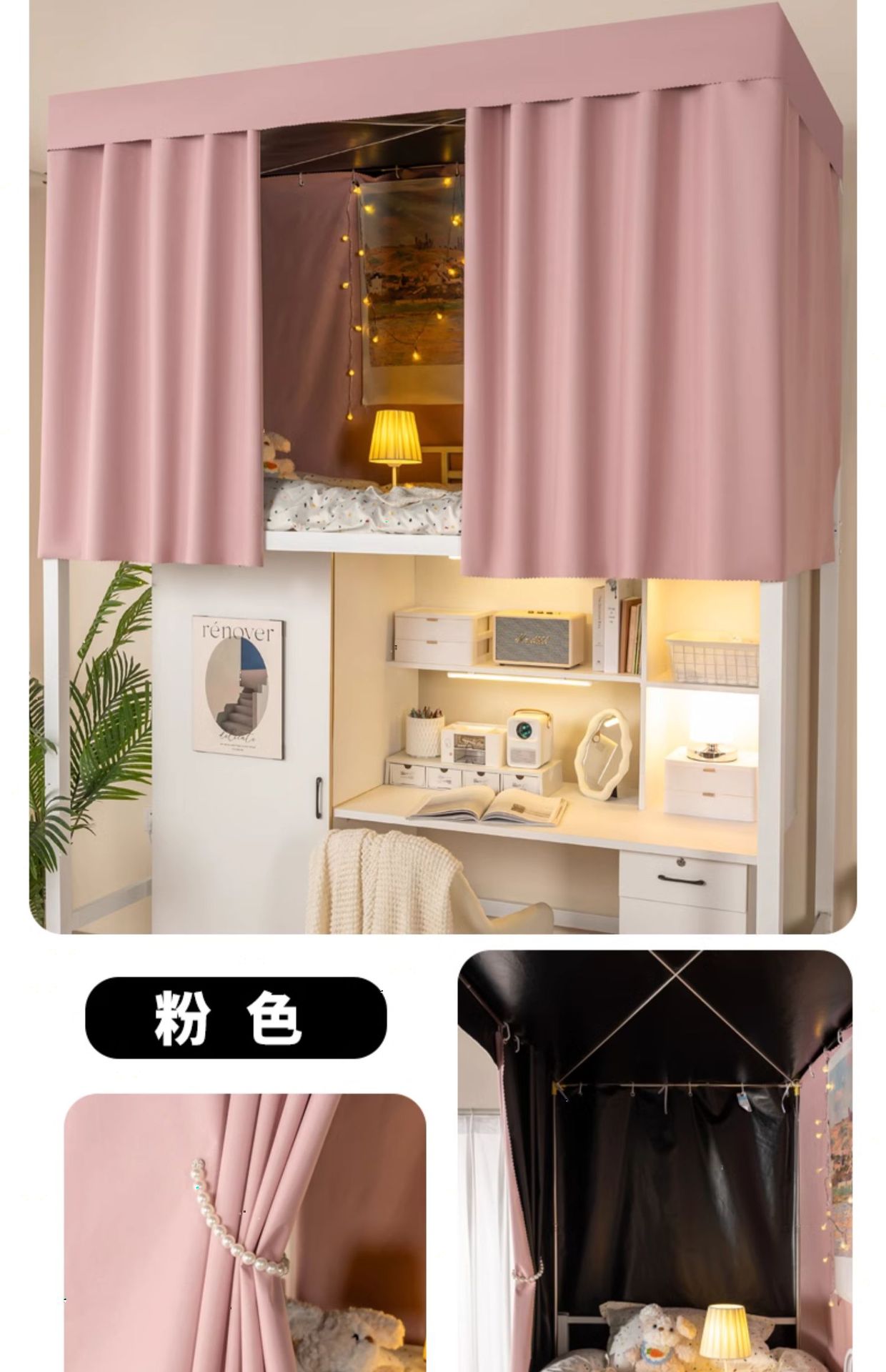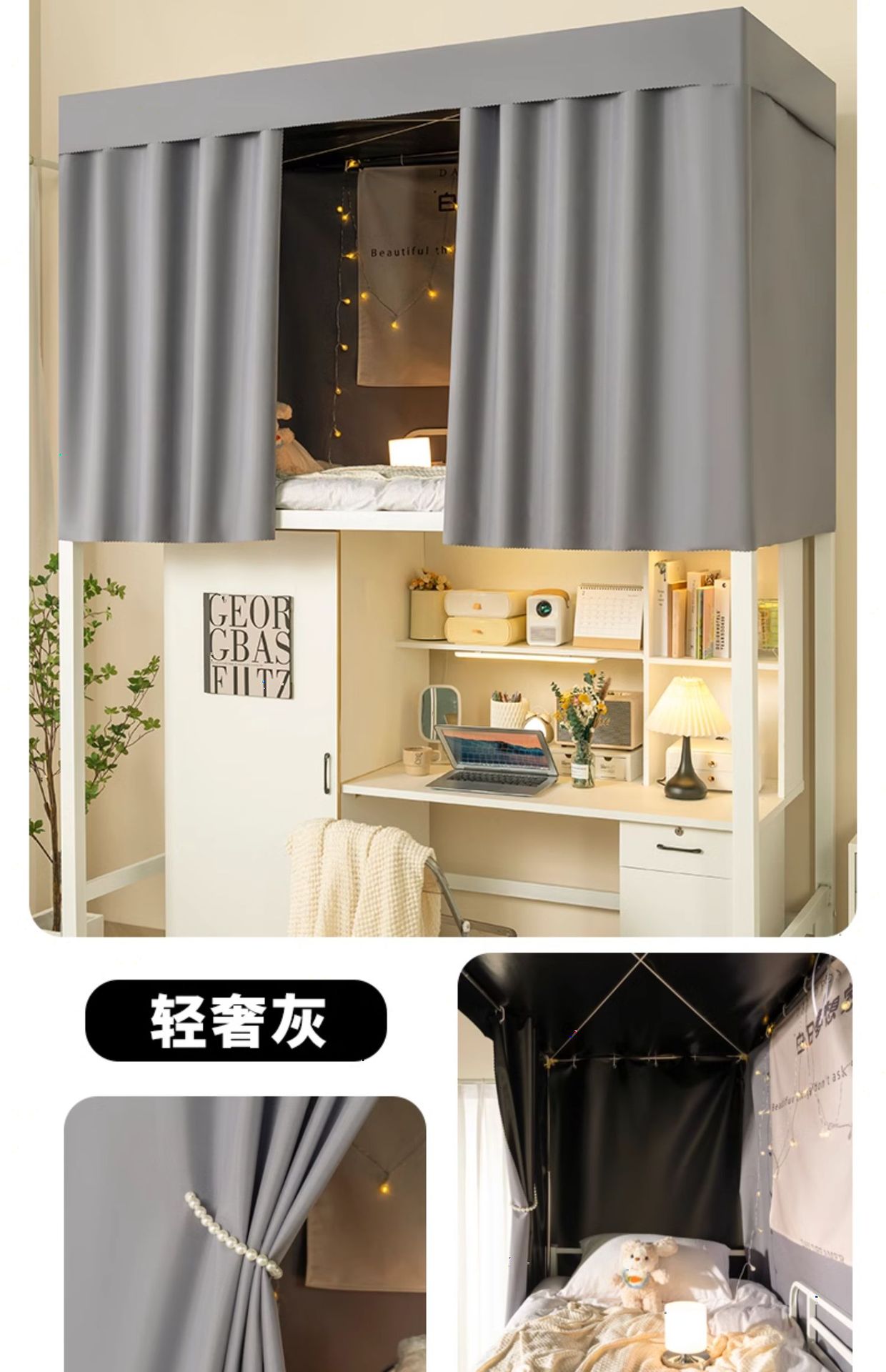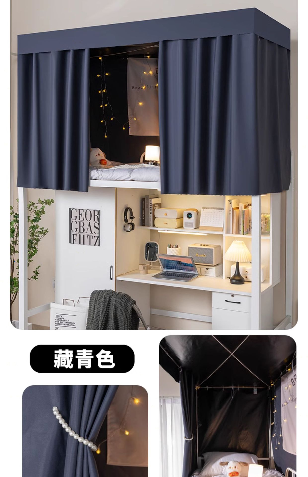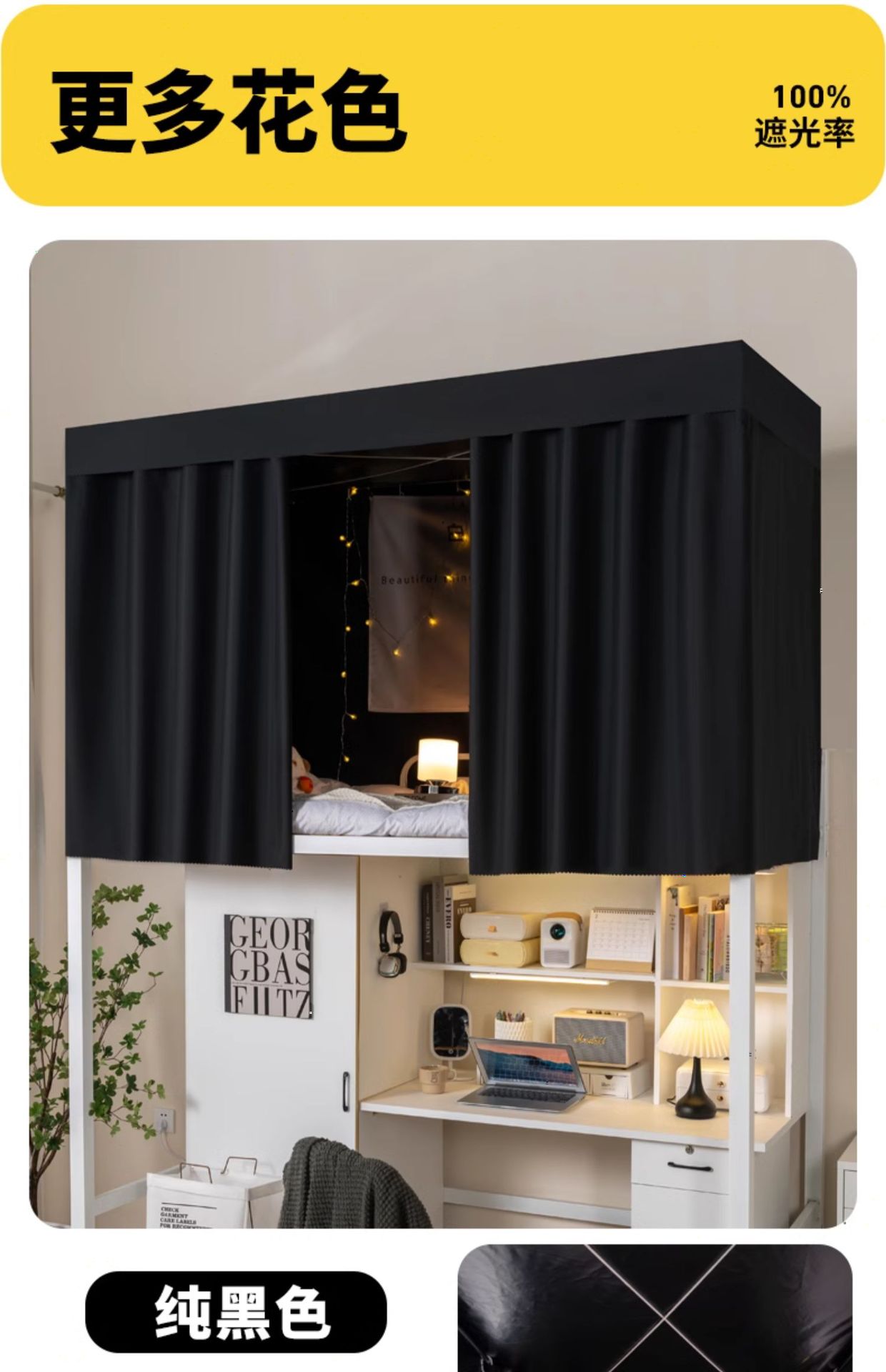 순수 블랙 두꺼운 강한 음영 침대 커튼 학생 기숙사 침실 상단 및 하단 침대 커튼 남성용 상단 및 하단 침대 커튼 여성용 테이블 커튼스토어 가기