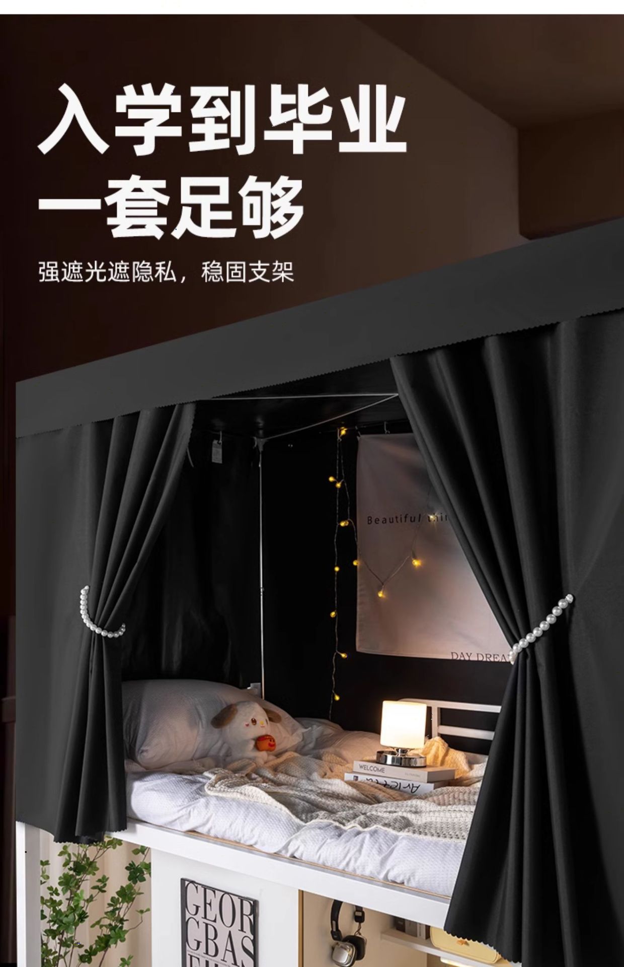 순수 블랙 두꺼운 강한 음영 침대 커튼 학생 기숙사 침실 상단 및 하단 침대 커튼 남성용 상단 및 하단 침대 커튼 여성용 테이블 커튼