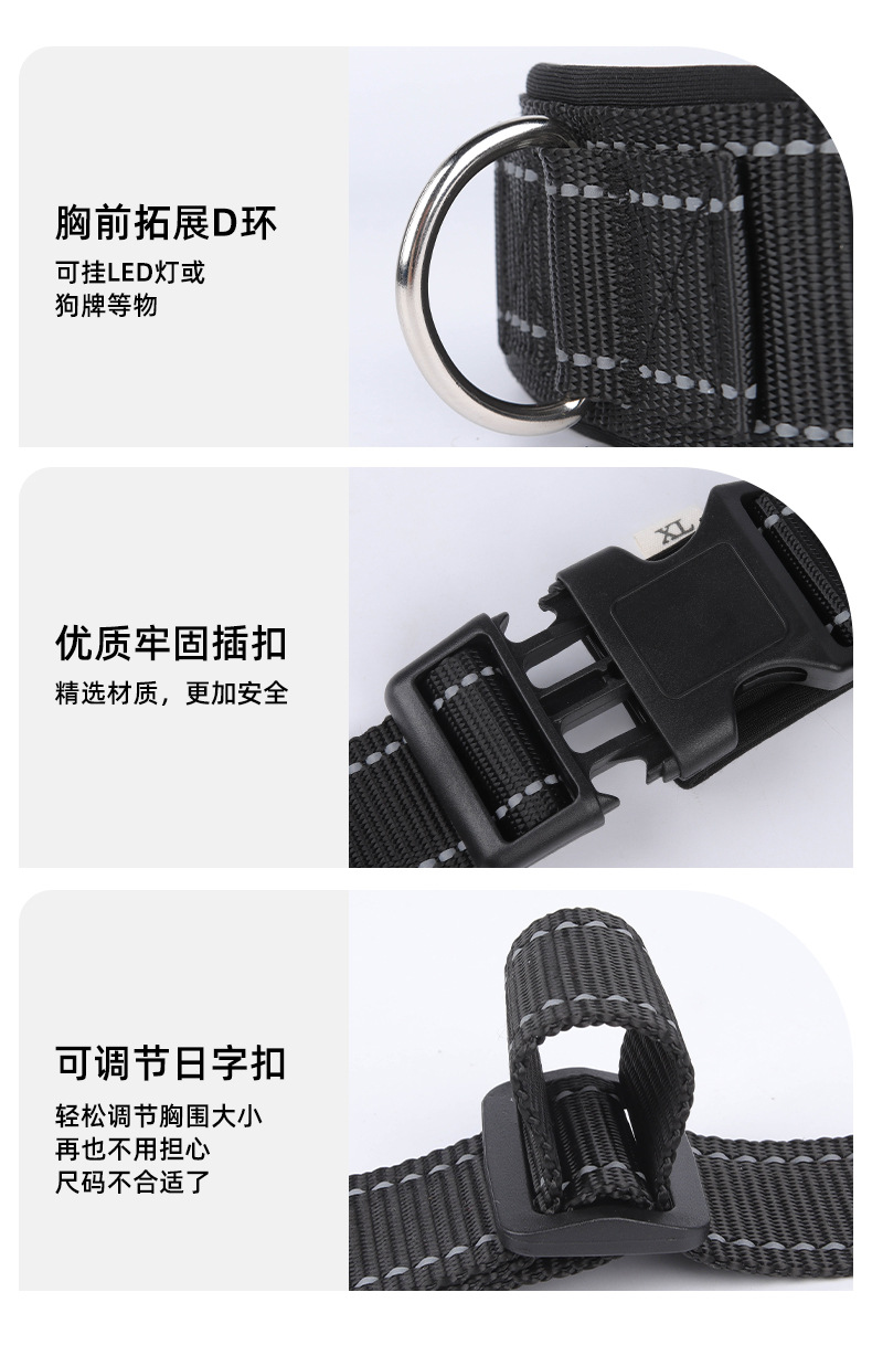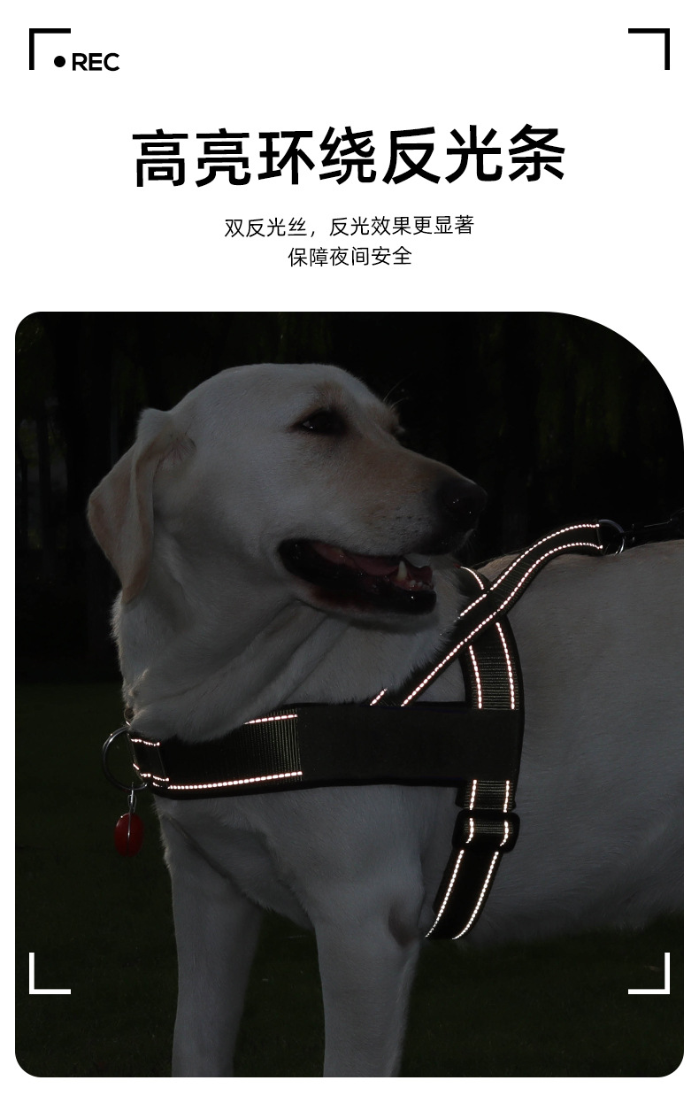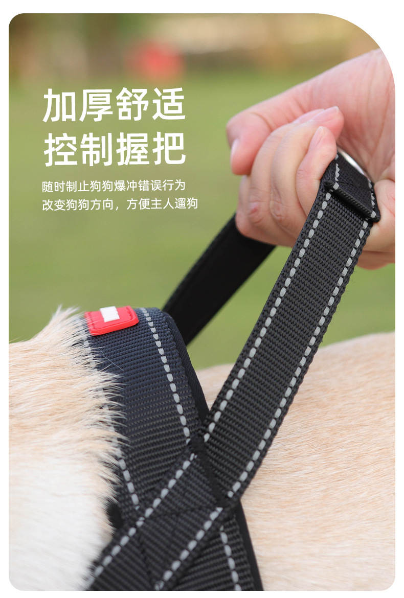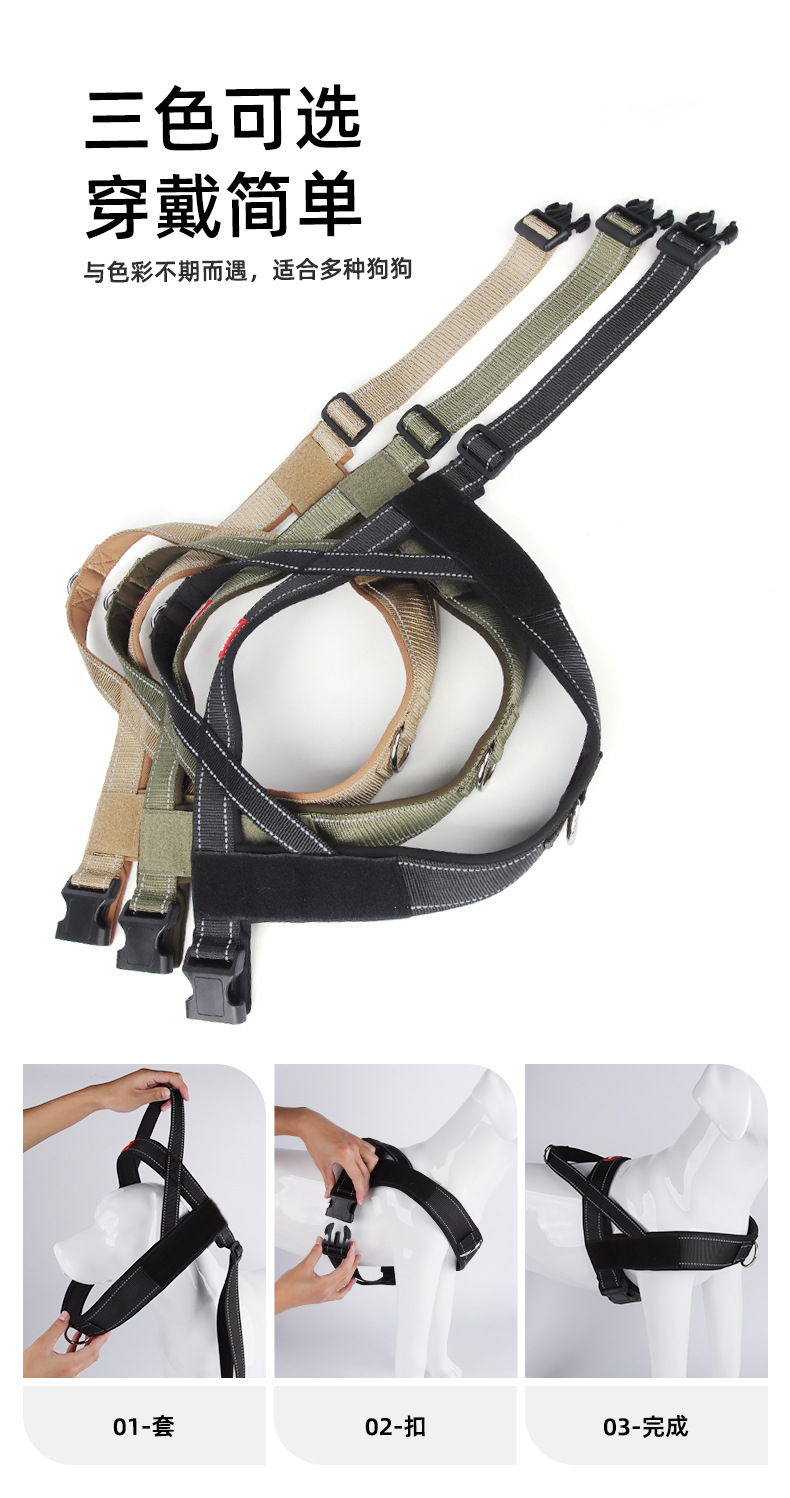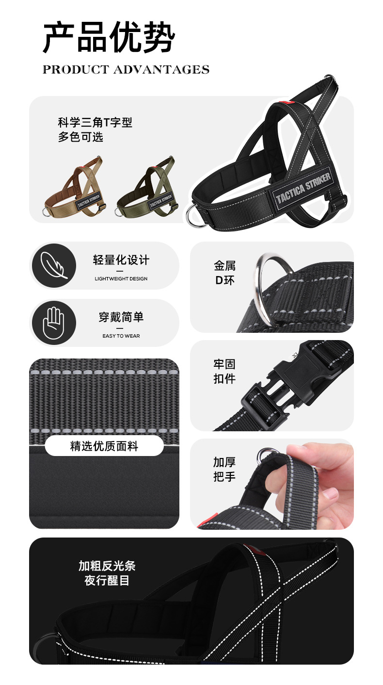 국경을 넘는 강아지 하네스, 야외용 대형견 목줄, 탈출 방지, 중대형견용 T형 경량 전술 반사 산책줄