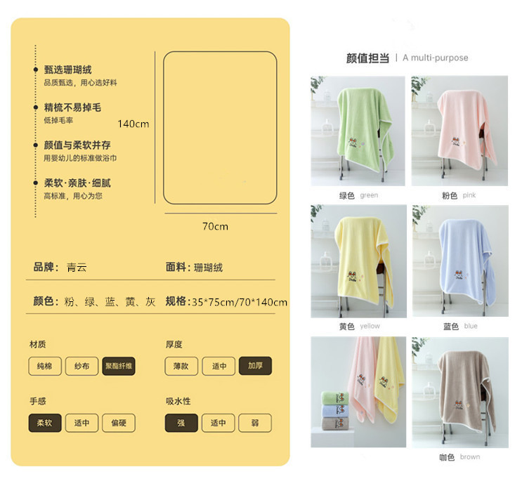 산호 양털 귀여운 오리 어린이 수건 목욕 수건 세트 침을 흘리는 가방 부드러운 여름 흡수성 빠른 건조
