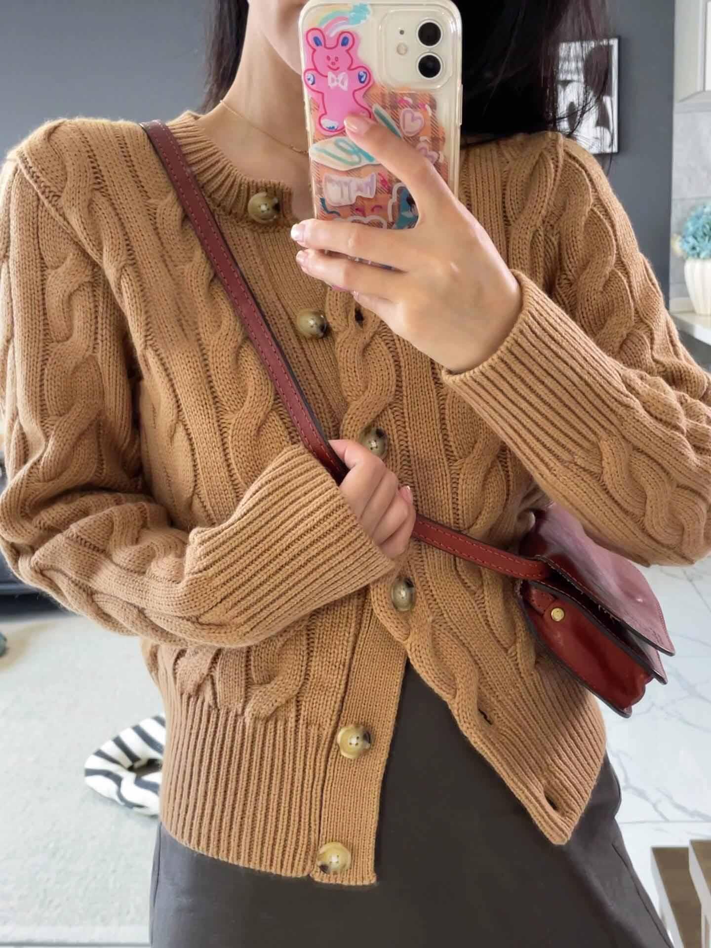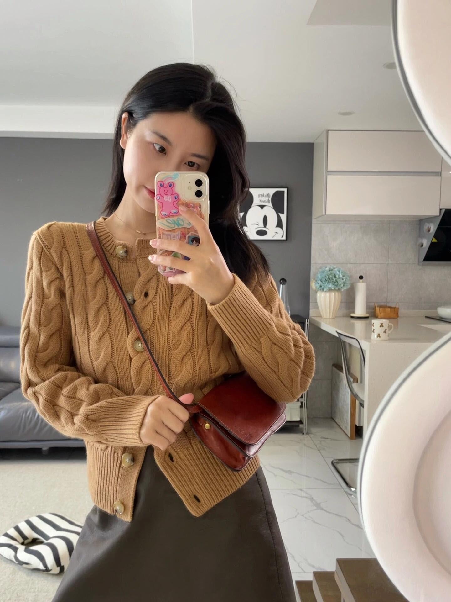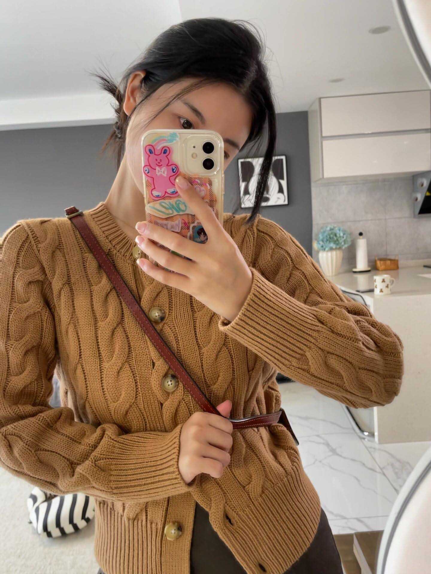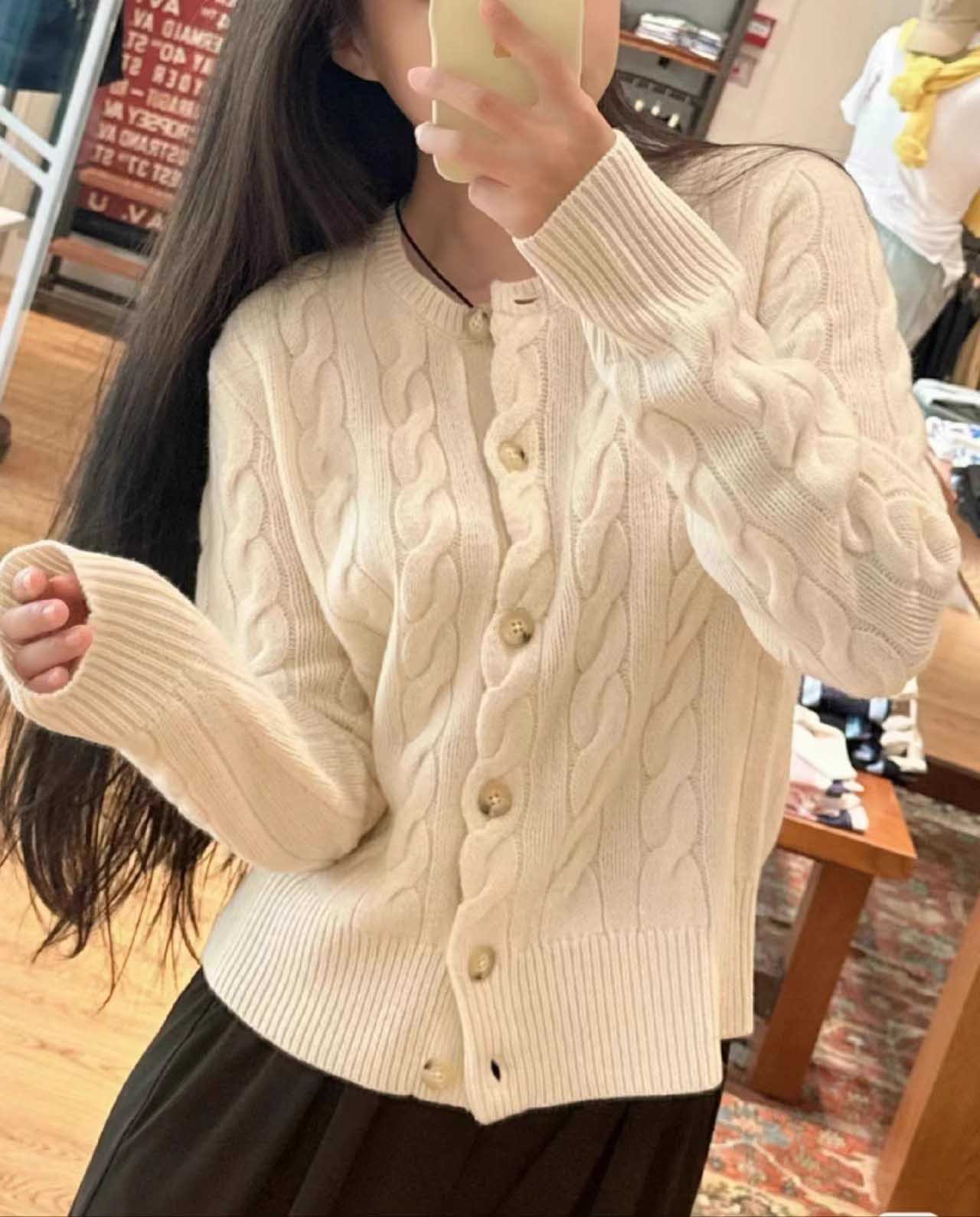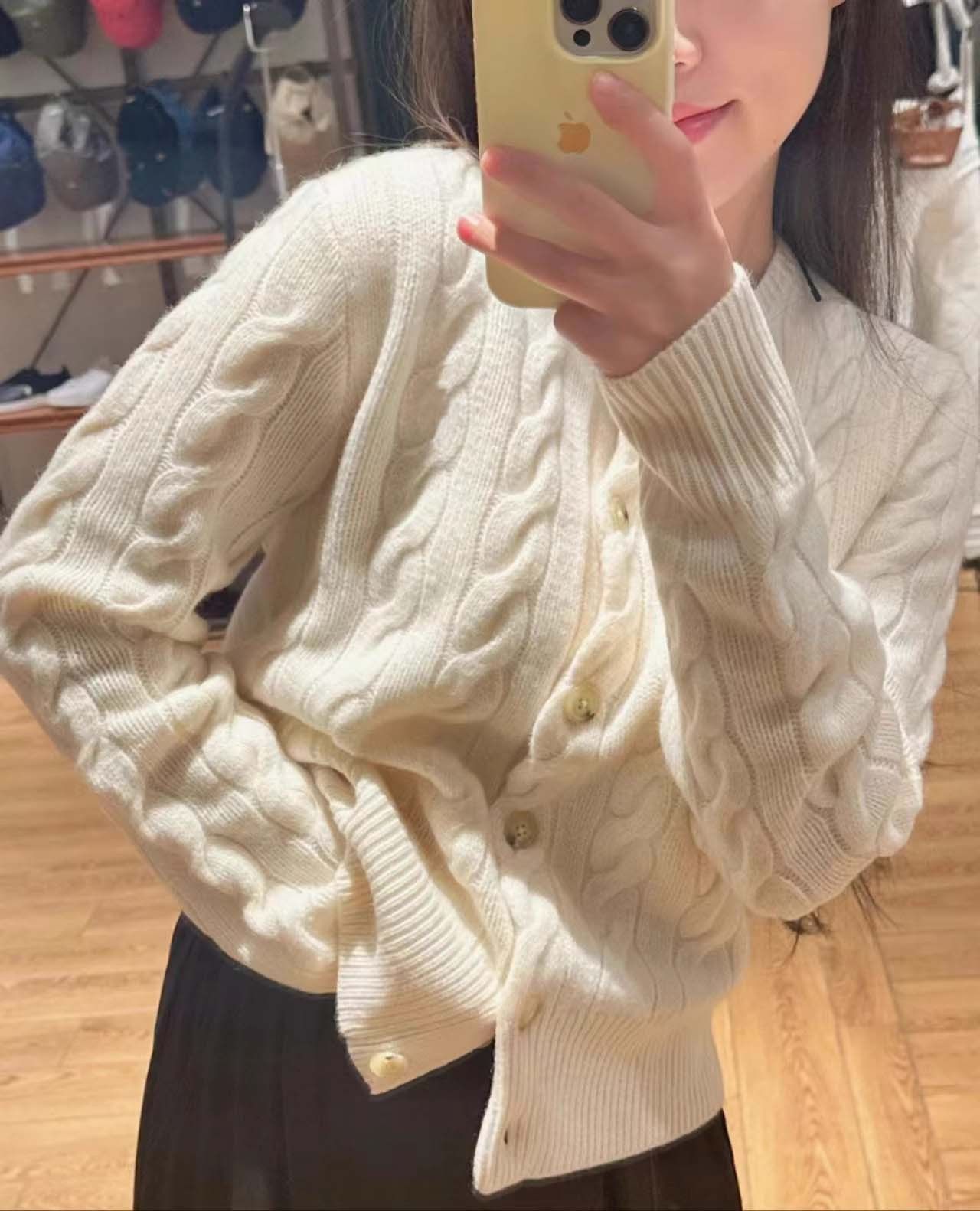 RL Ruff Pony Mark Coat 두꺼운 자수 트위스트 크루 넥 스웨터 여성의 폴 카디건 짧은 가을과 겨울스토어 가기