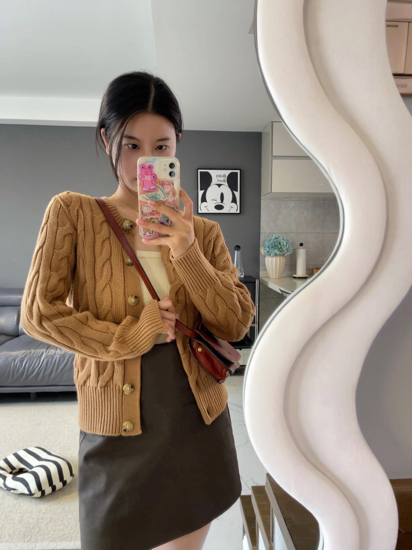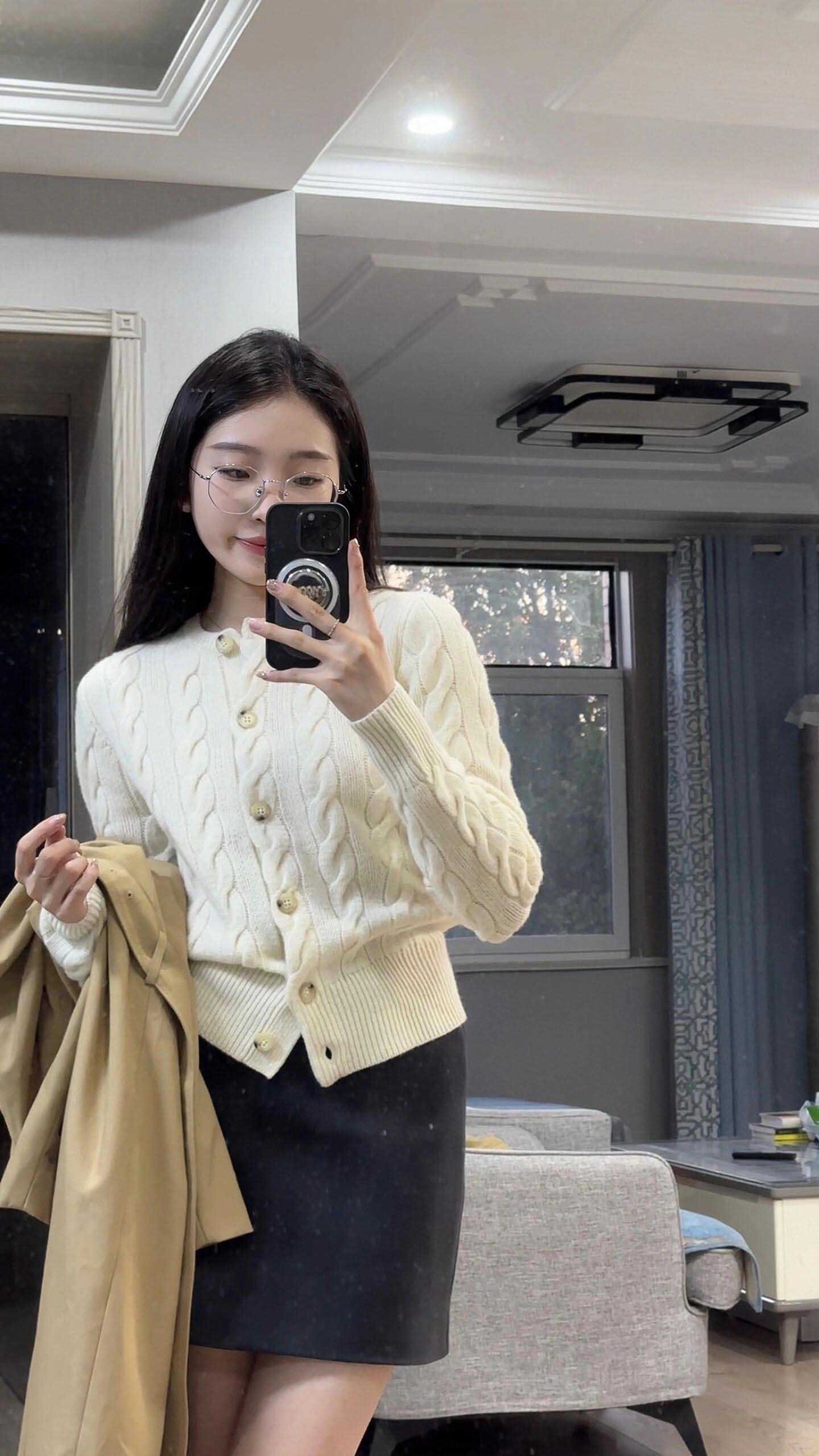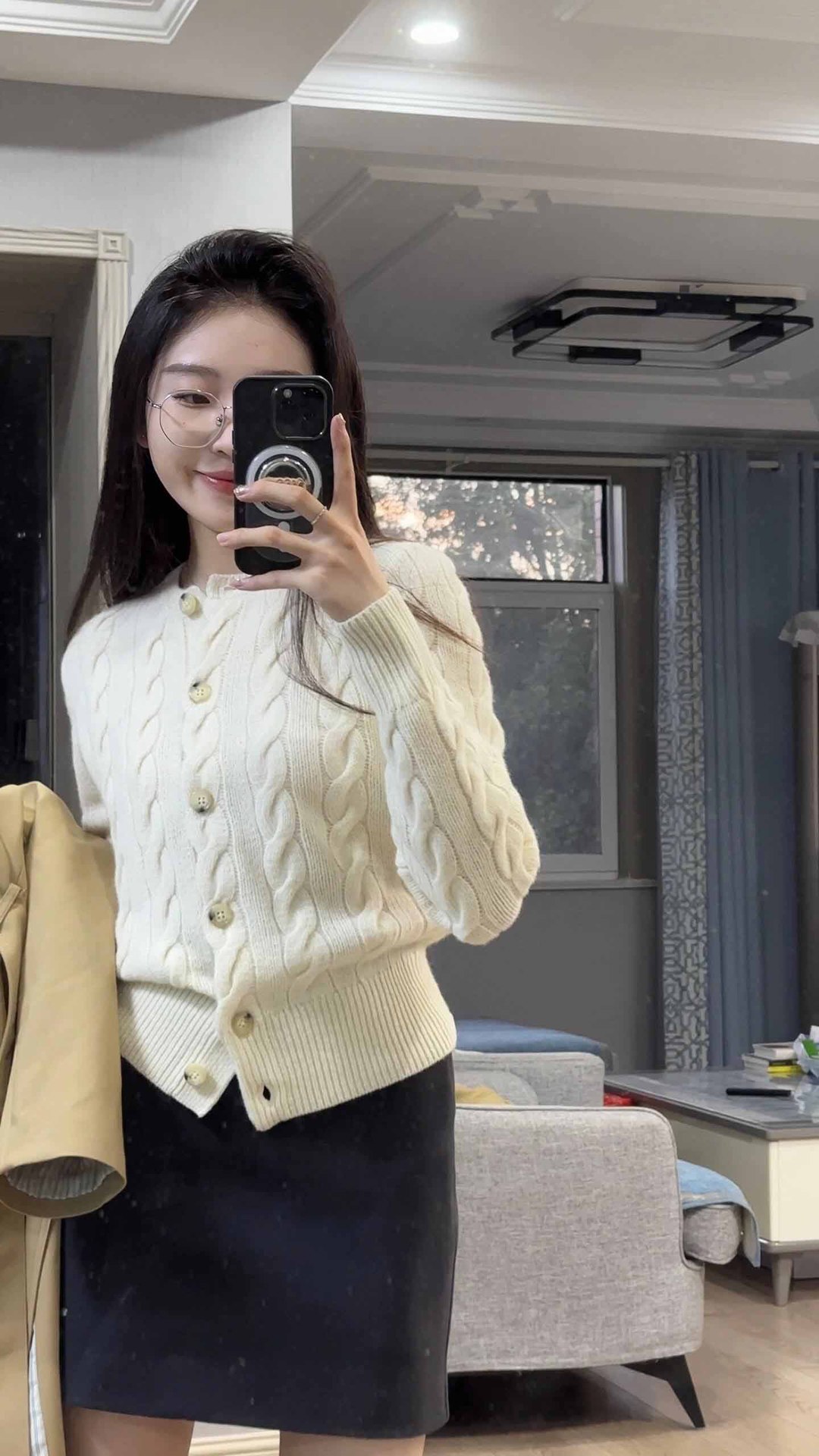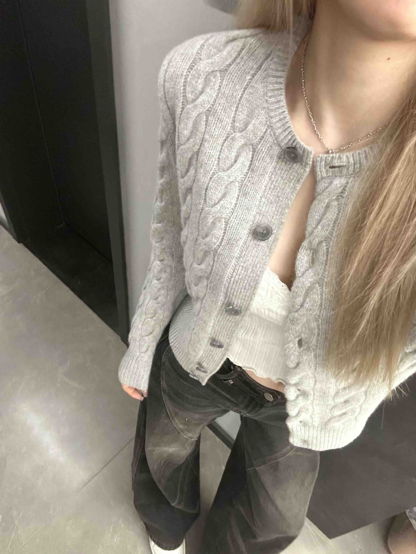 RL Ruff Pony Mark Coat 두꺼운 자수 트위스트 크루 넥 스웨터 여성의 폴 카디건 짧은 가을과 겨울스토어 가기