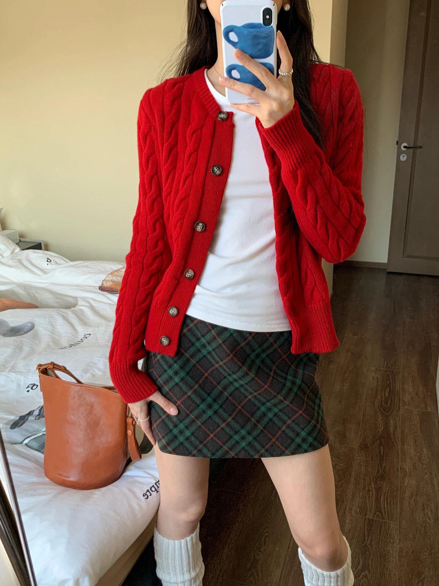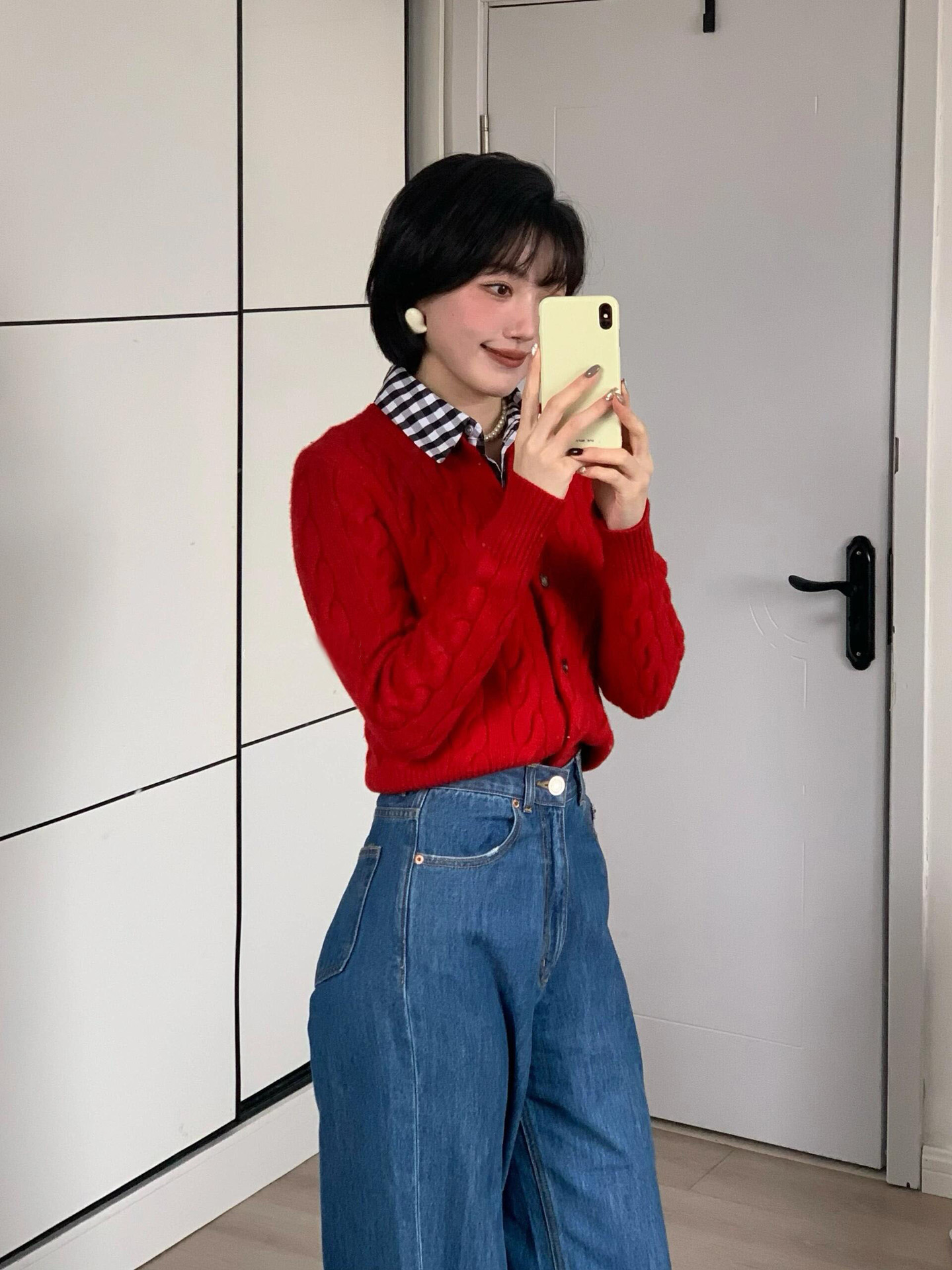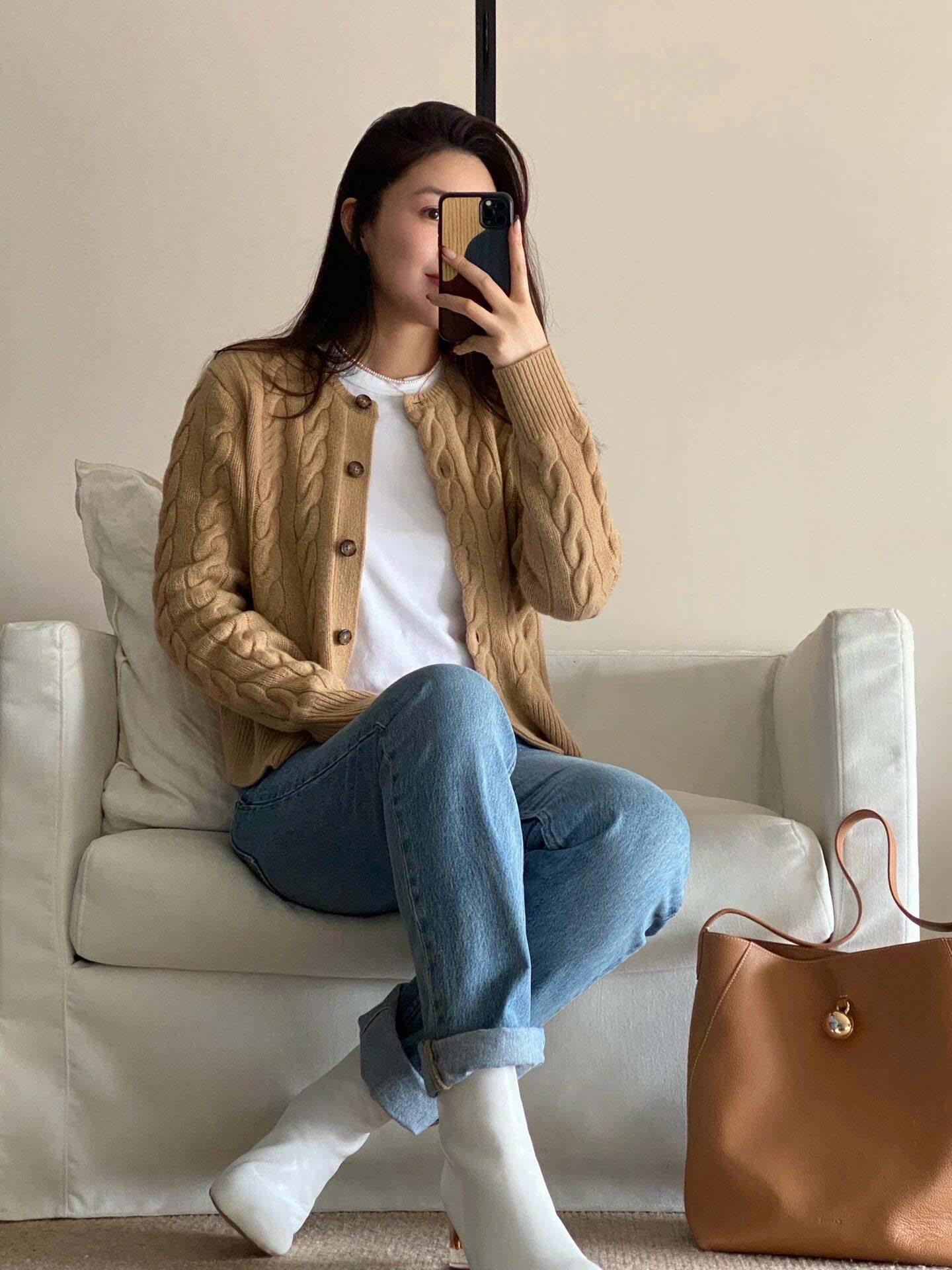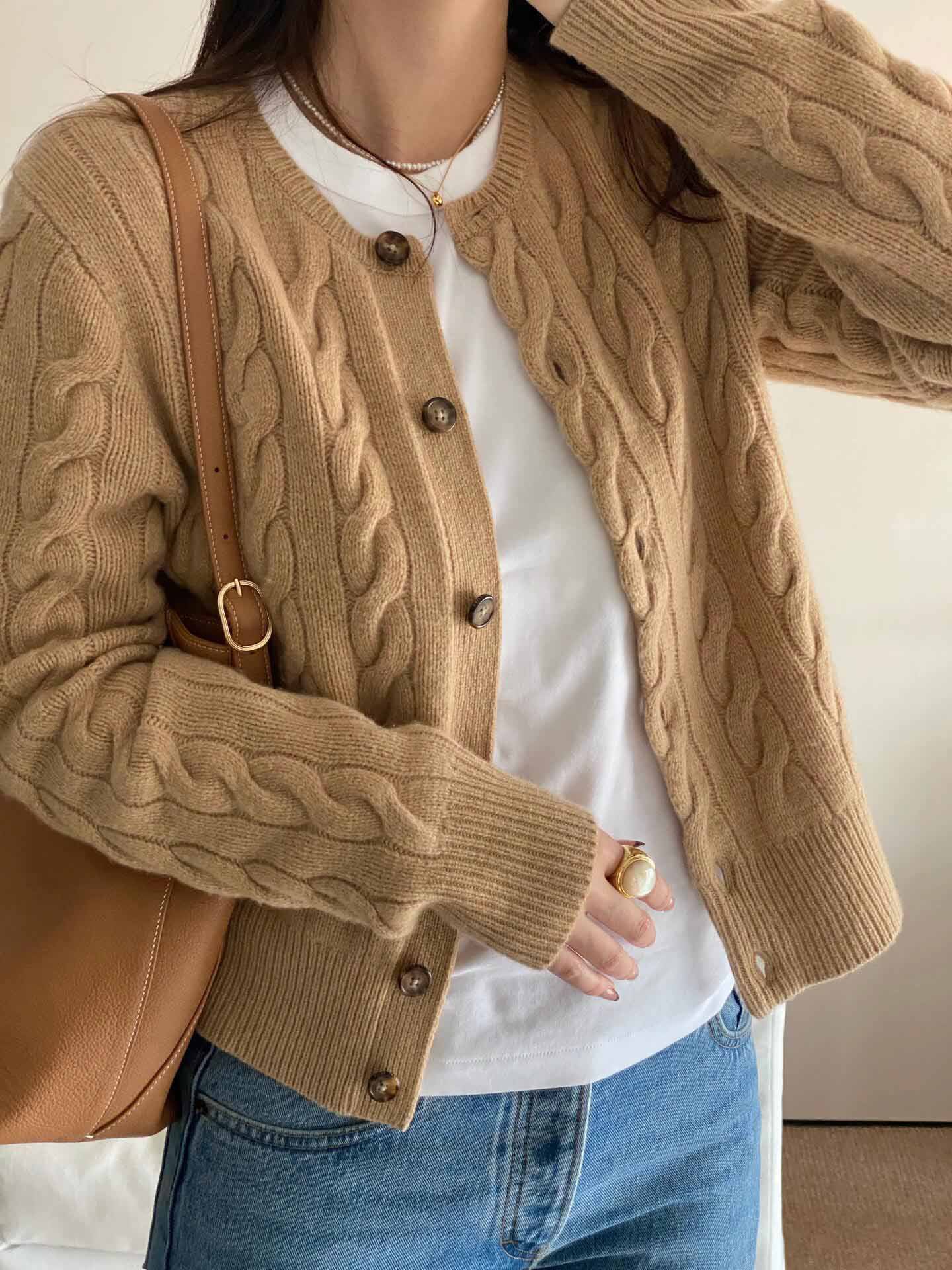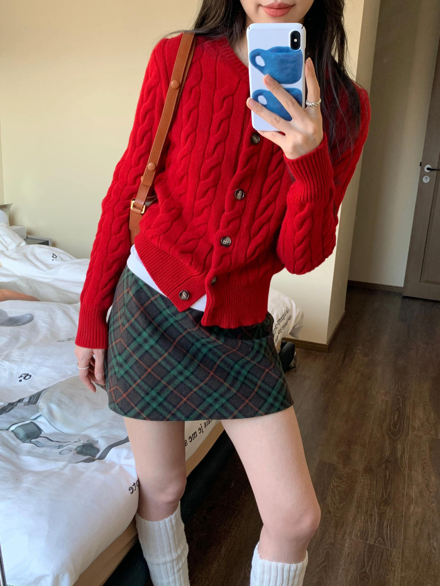 RL Ruff Pony Mark Coat 두꺼운 자수 트위스트 크루 넥 스웨터 여성의 폴 카디건 짧은 가을과 겨울스토어 가기