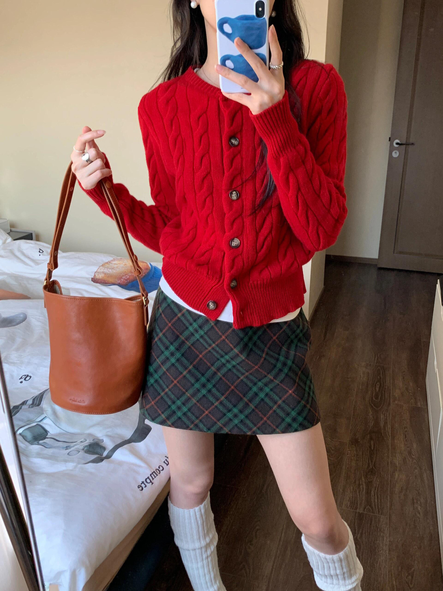 RL Ruff Pony Mark Coat 두꺼운 자수 트위스트 크루 넥 스웨터 여성의 폴 카디건 짧은 가을과 겨울