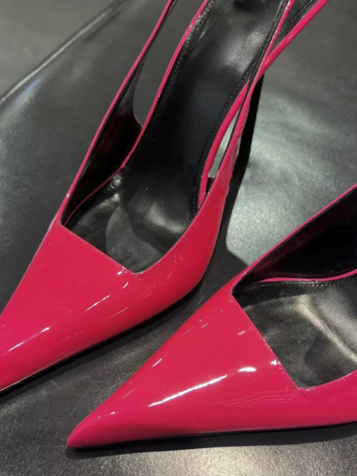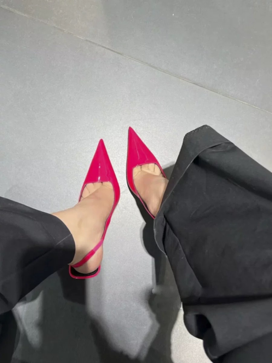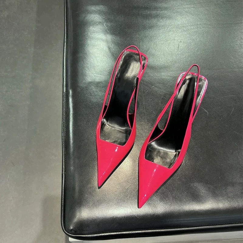 2024 새로운 도착 하이힐 프렌치 스타일 우아한 바오터우 빈 샌들 여성 신발 특허 가죽 블랙 포인티드 신발 여성 플러스 사이즈스토어 가기