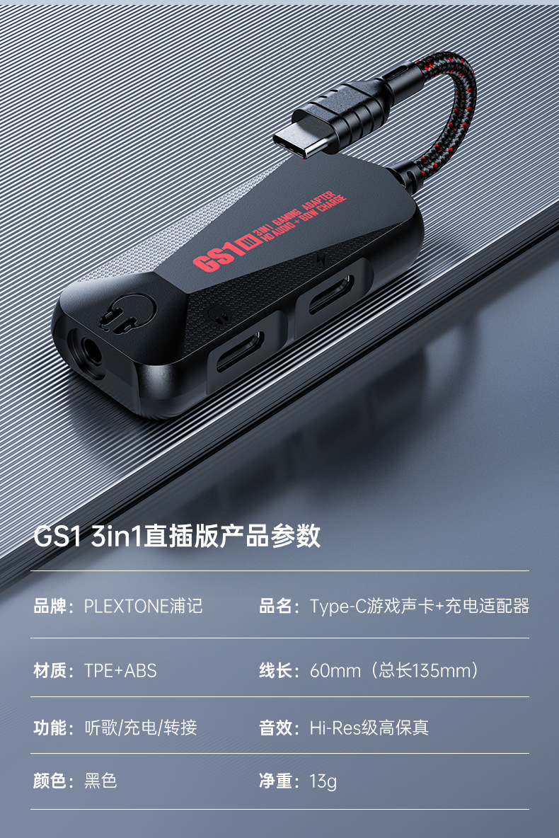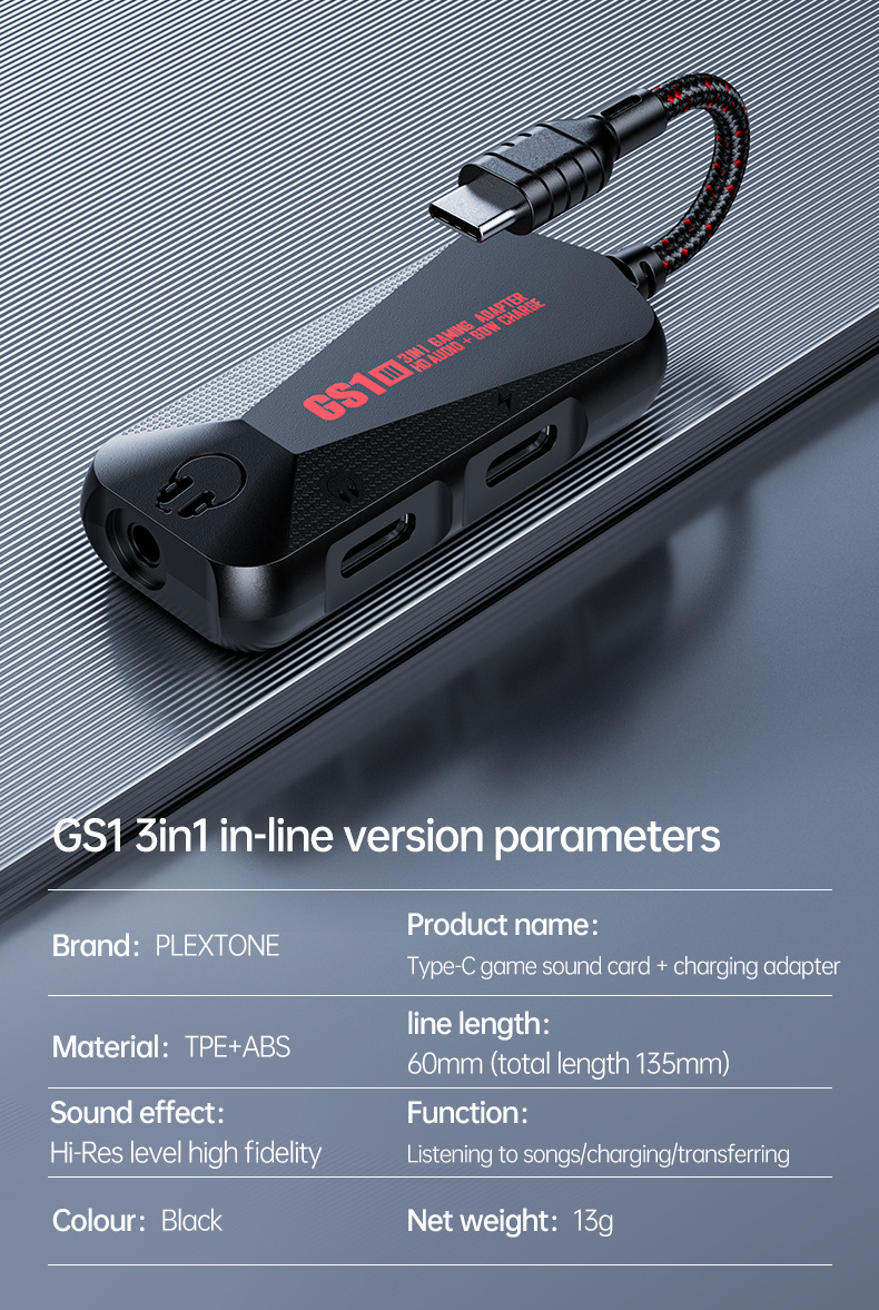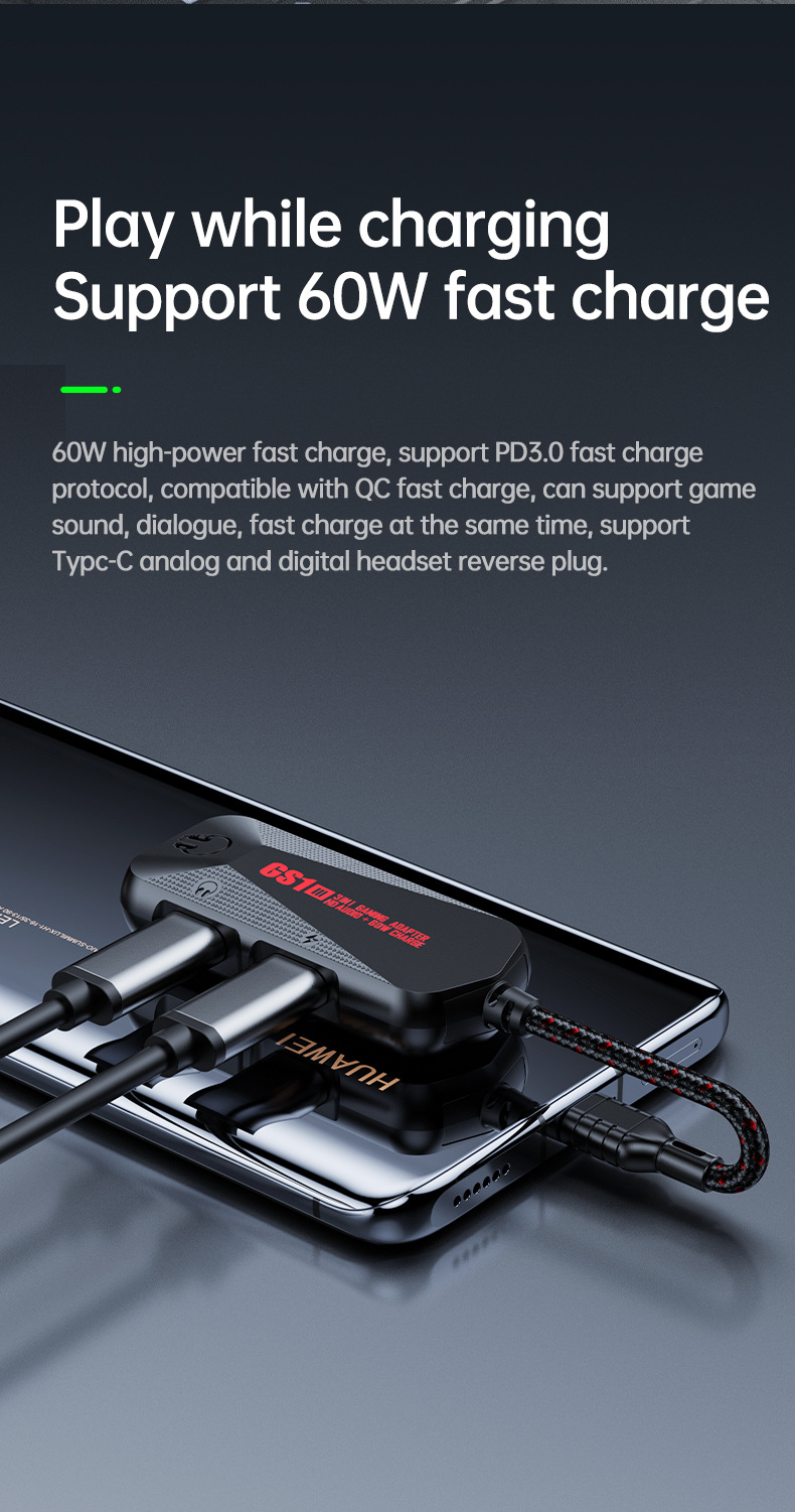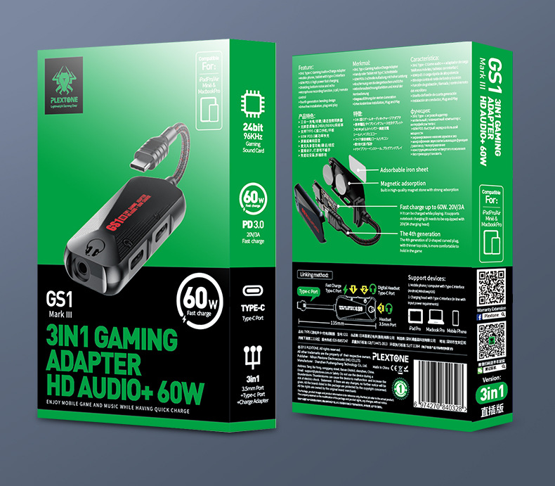 엄선된 푸지 GS1 3-in-1 60W PD 고속 충전 컨버터, 휴대폰 게임용 충전 및 음악 감상 겸용 어댑터, 사운드 카드