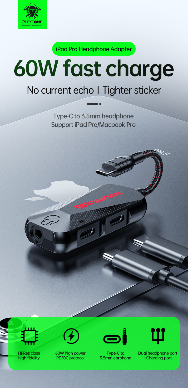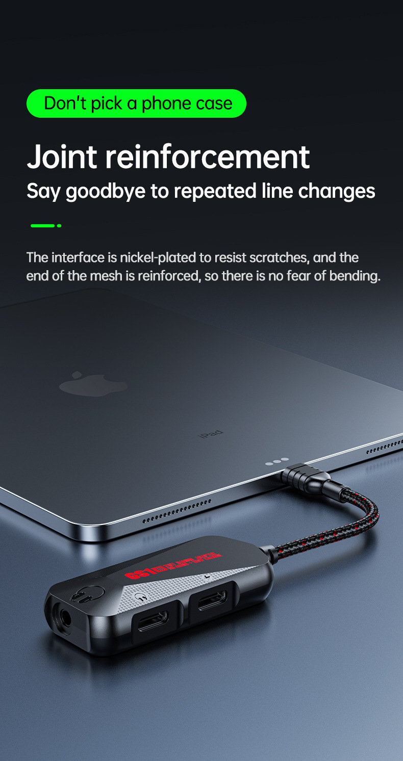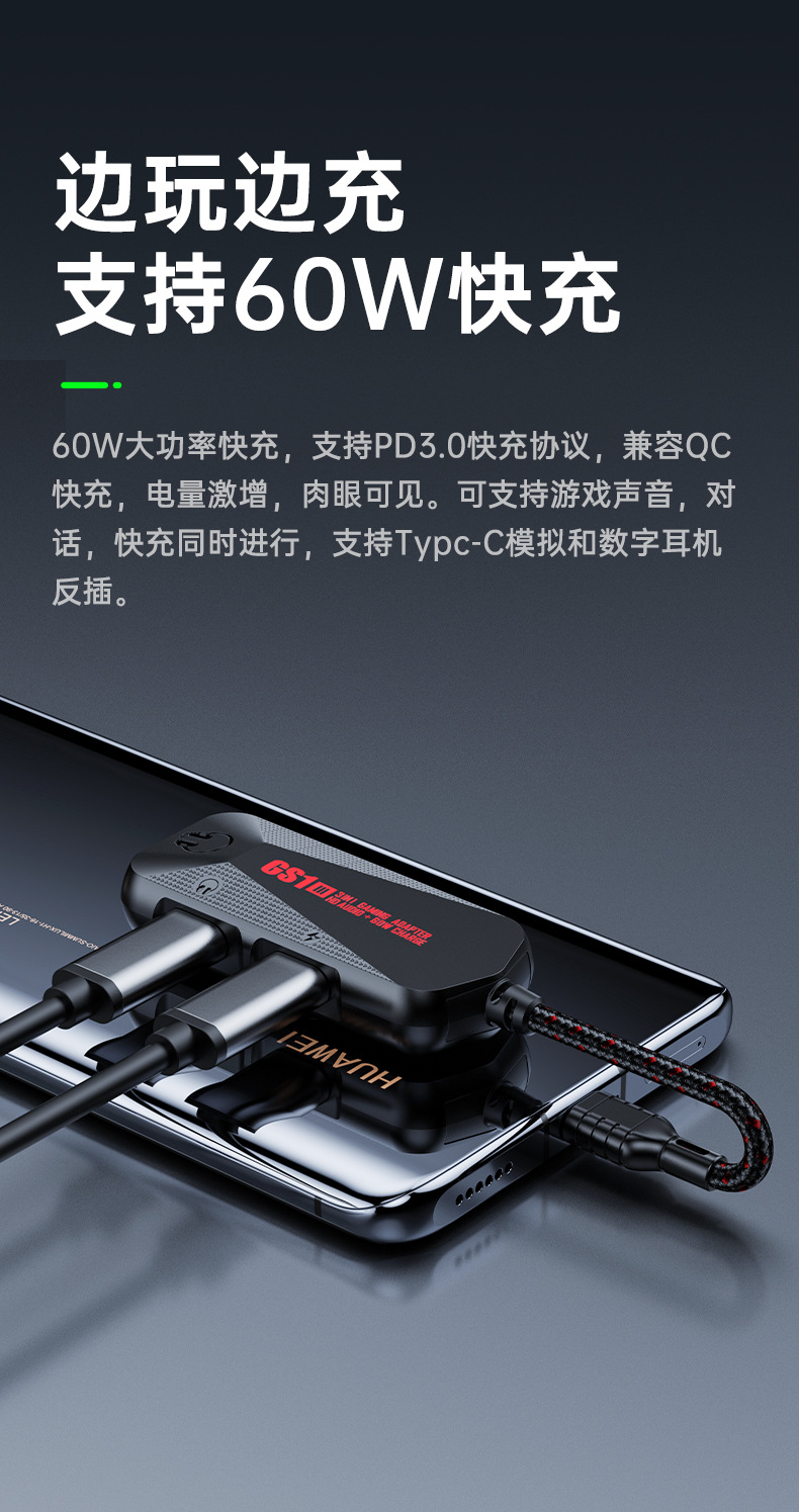 엄선된 푸지 GS1 3-in-1 60W PD 고속 충전 컨버터, 휴대폰 게임용 충전 및 음악 감상 겸용 어댑터, 사운드 카드