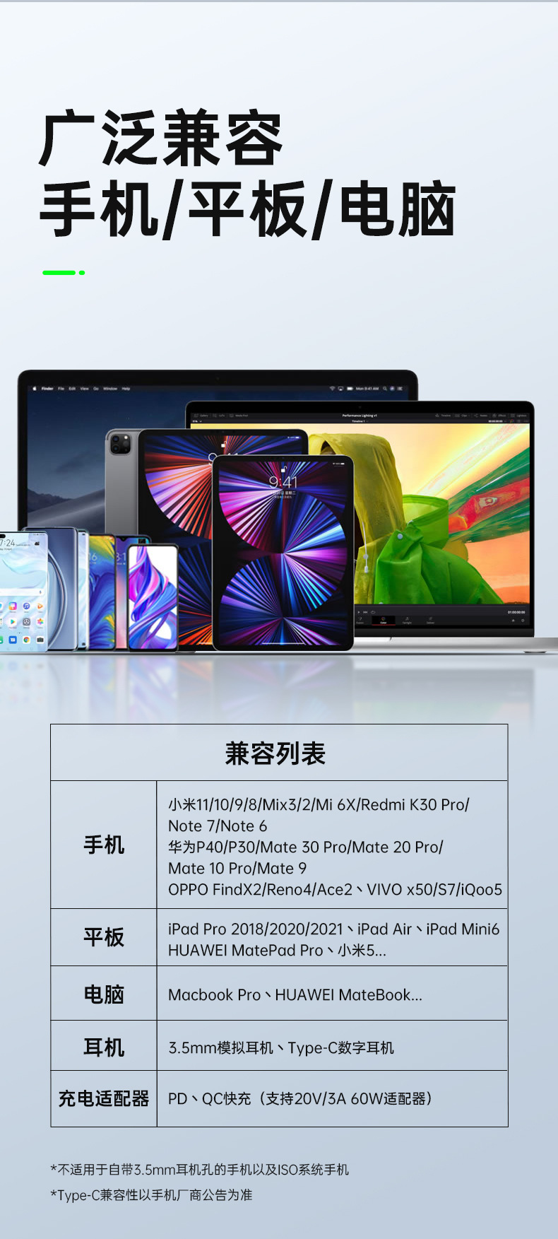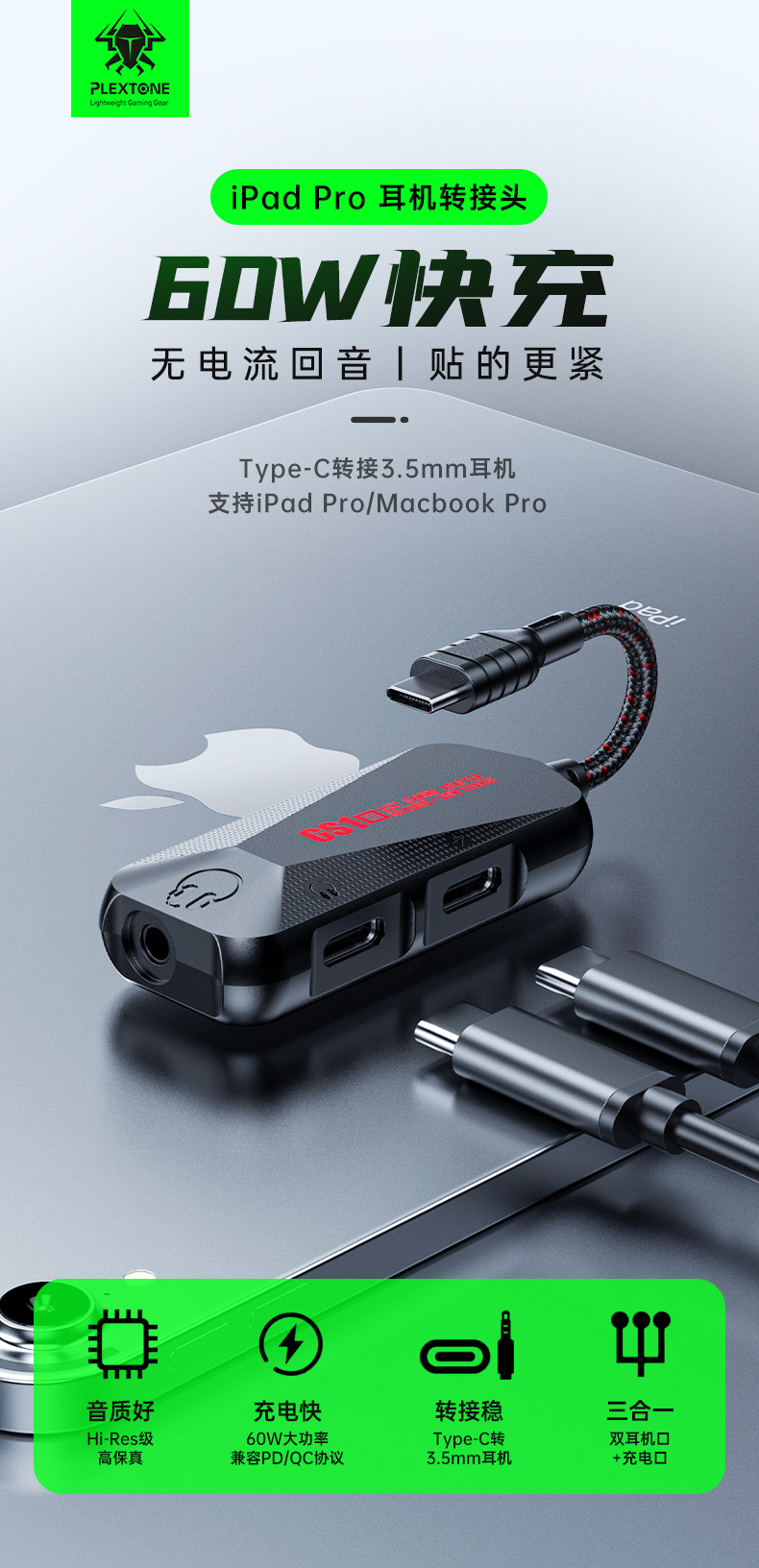 엄선된 푸지 GS1 3-in-1 60W PD 고속 충전 컨버터, 휴대폰 게임용 충전 및 음악 감상 겸용 어댑터, 사운드 카드스토어 가기