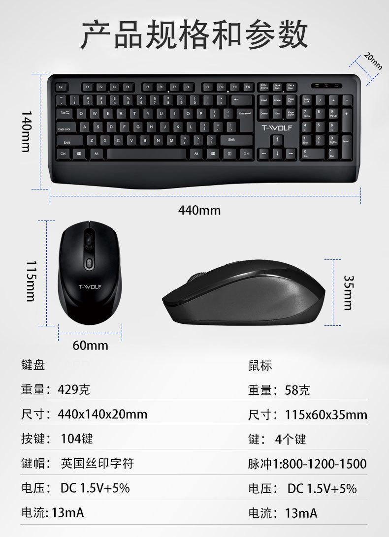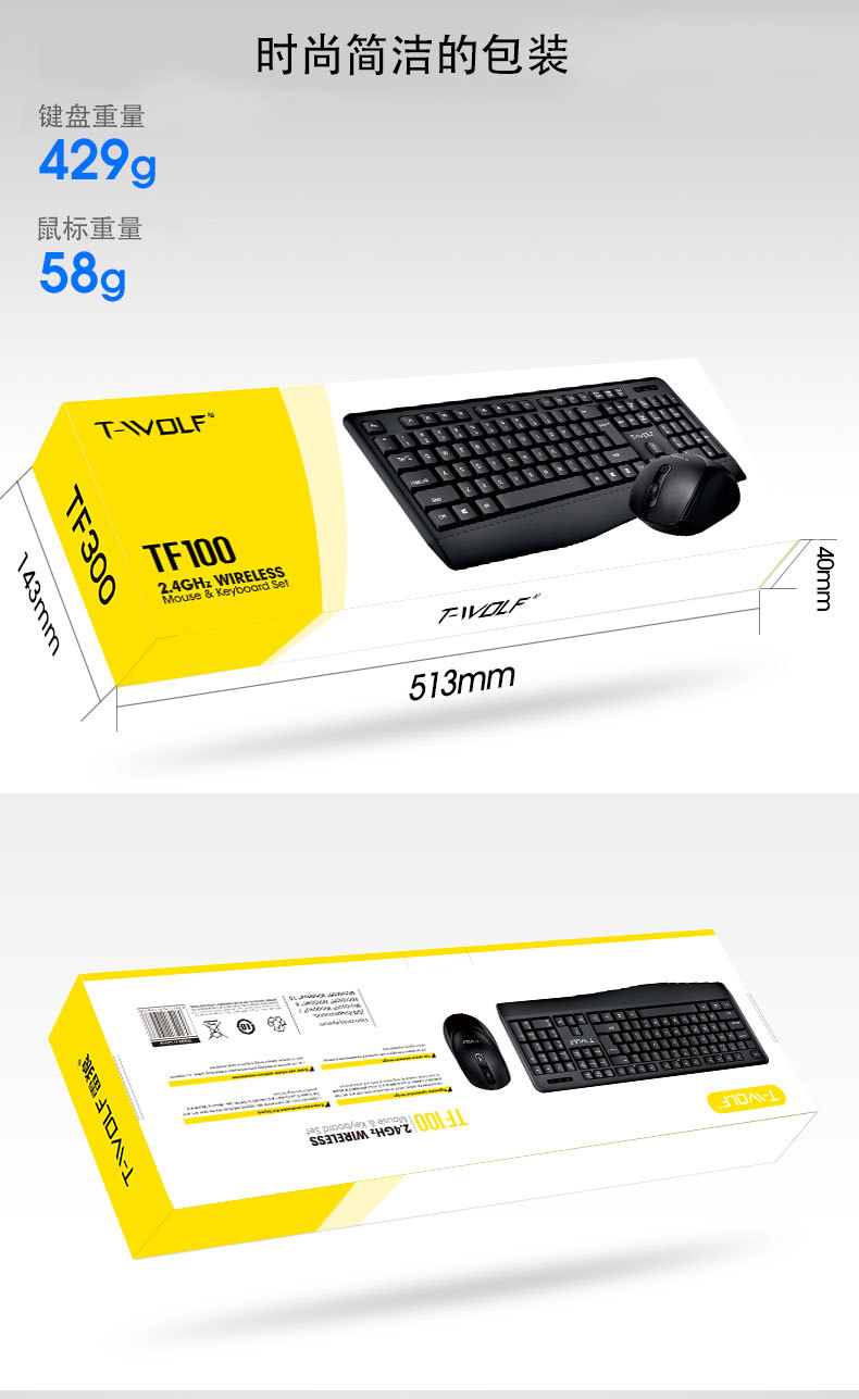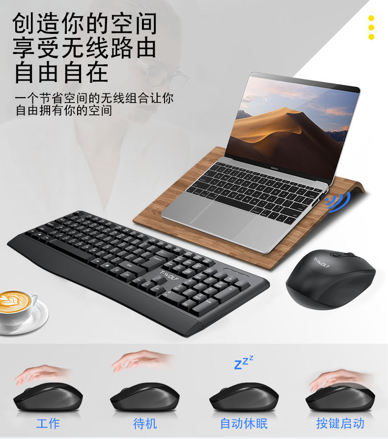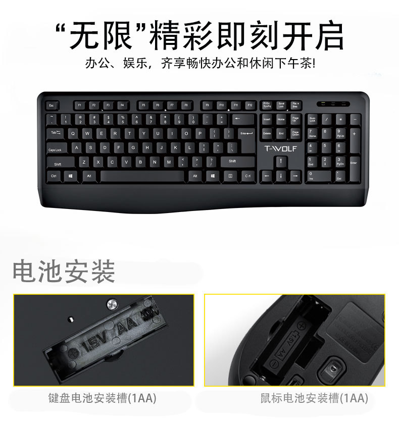 T-WOLF 천둥 늑대 TF100 무선 세트 사무실 비즈니스 노트북 홈 USB 무제한 키보드 및 마우스 국경스토어 가기