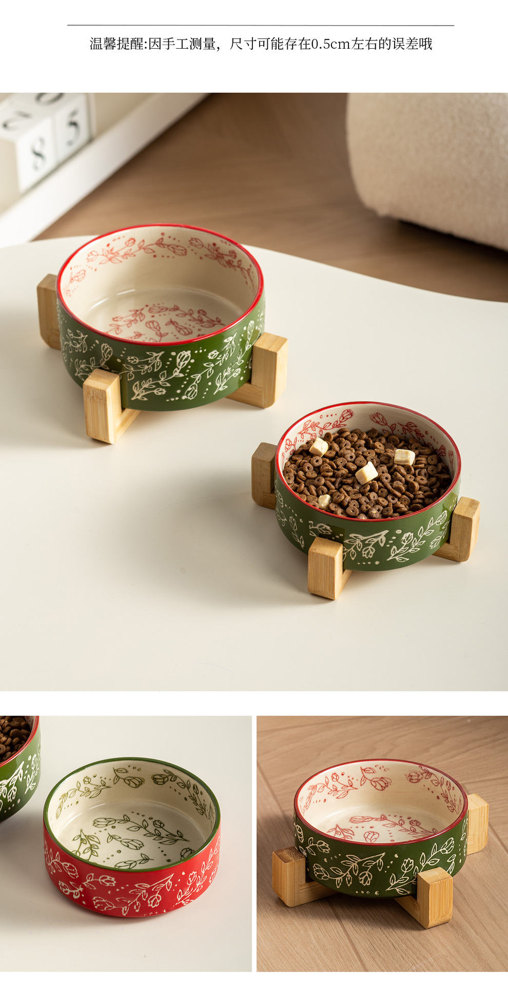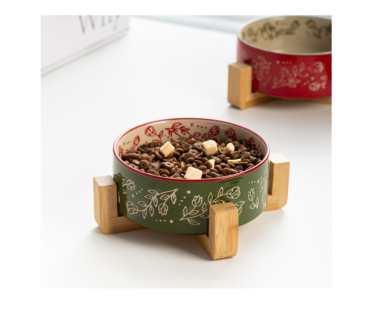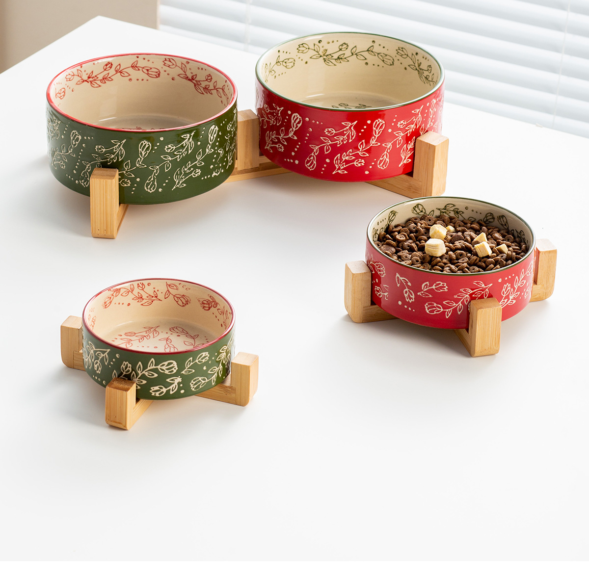 창의적인 민족 스타일 스트레이트 입 그릇 나무 랙 가정용 애완 동물 그릇 세라믹 그릇 고양이 그릇 개 그릇 고양이 마시는 개 분지