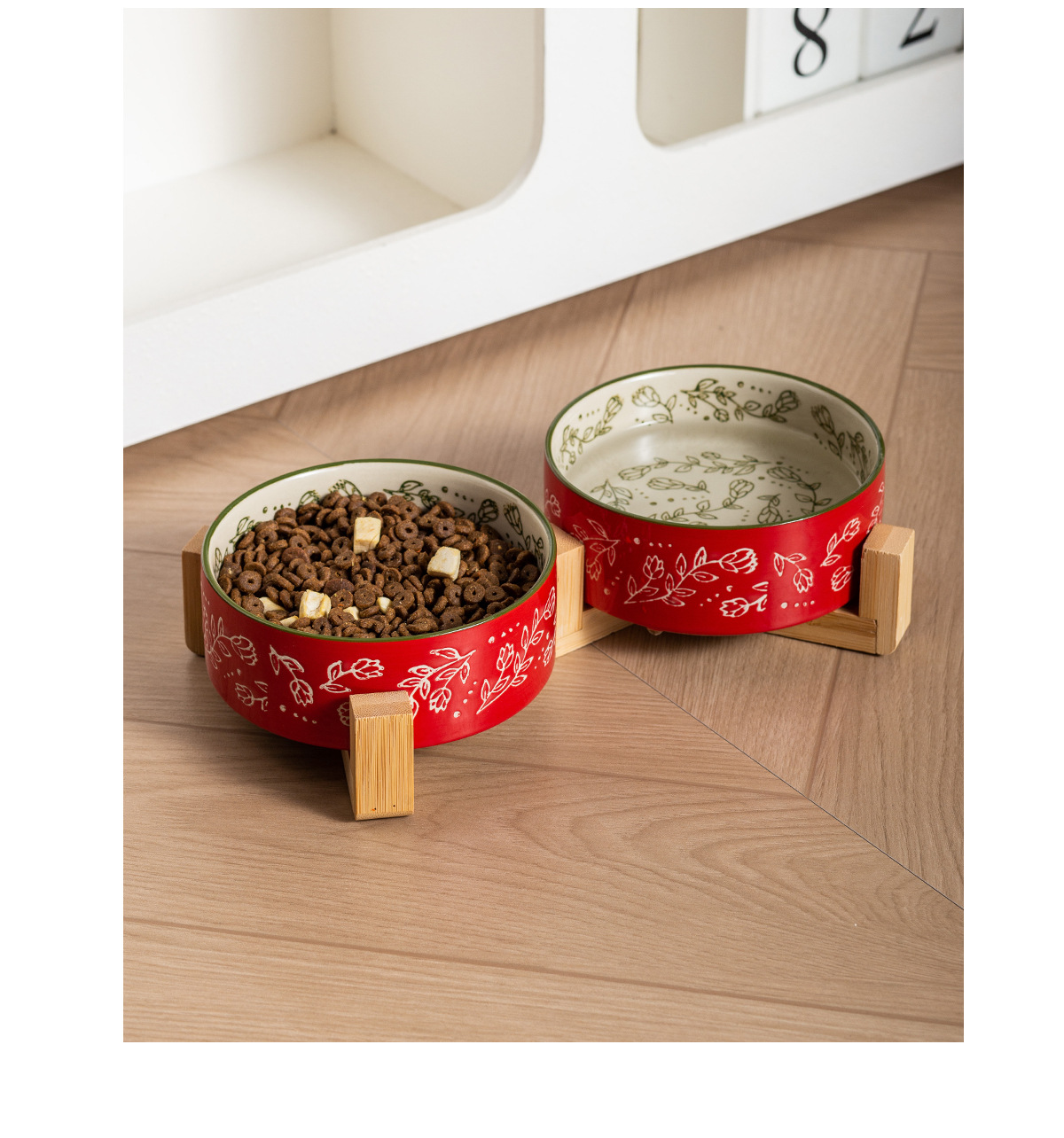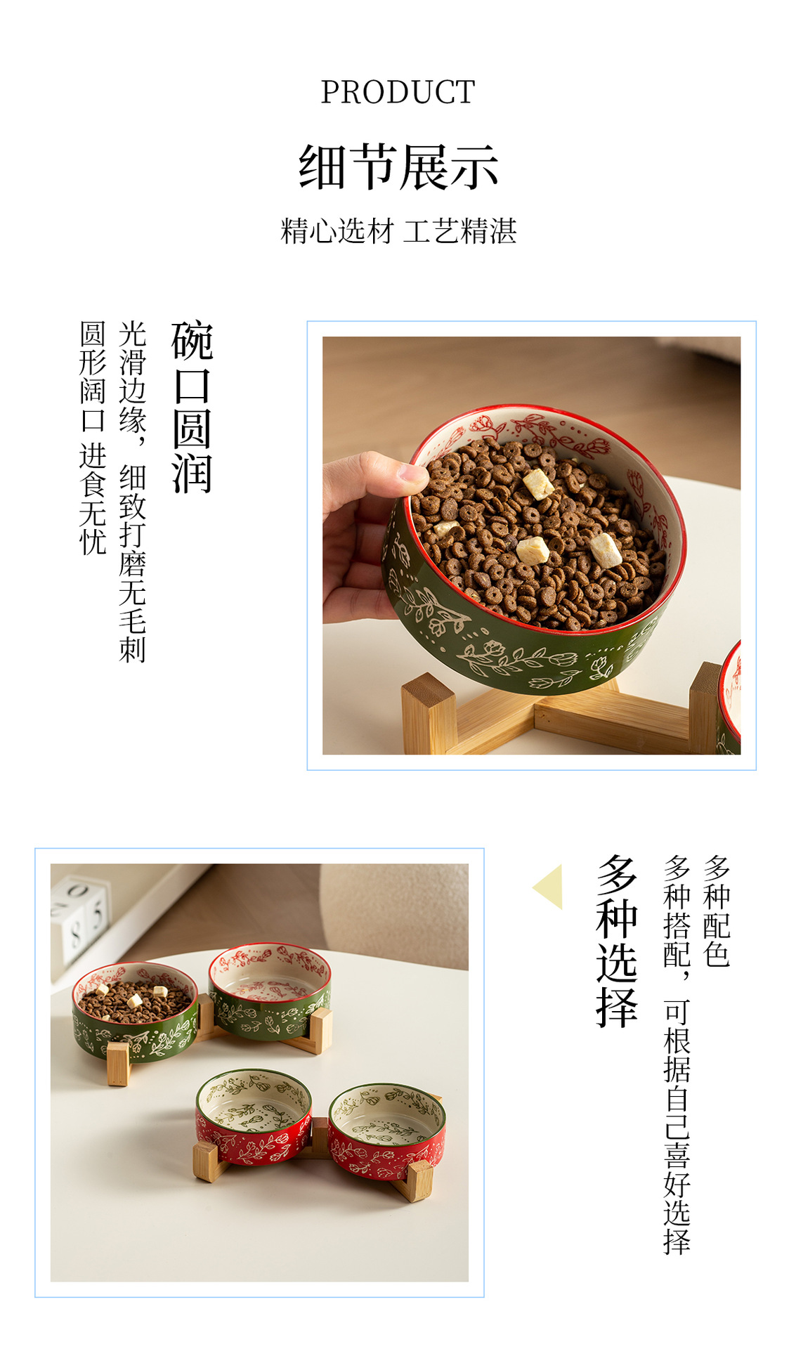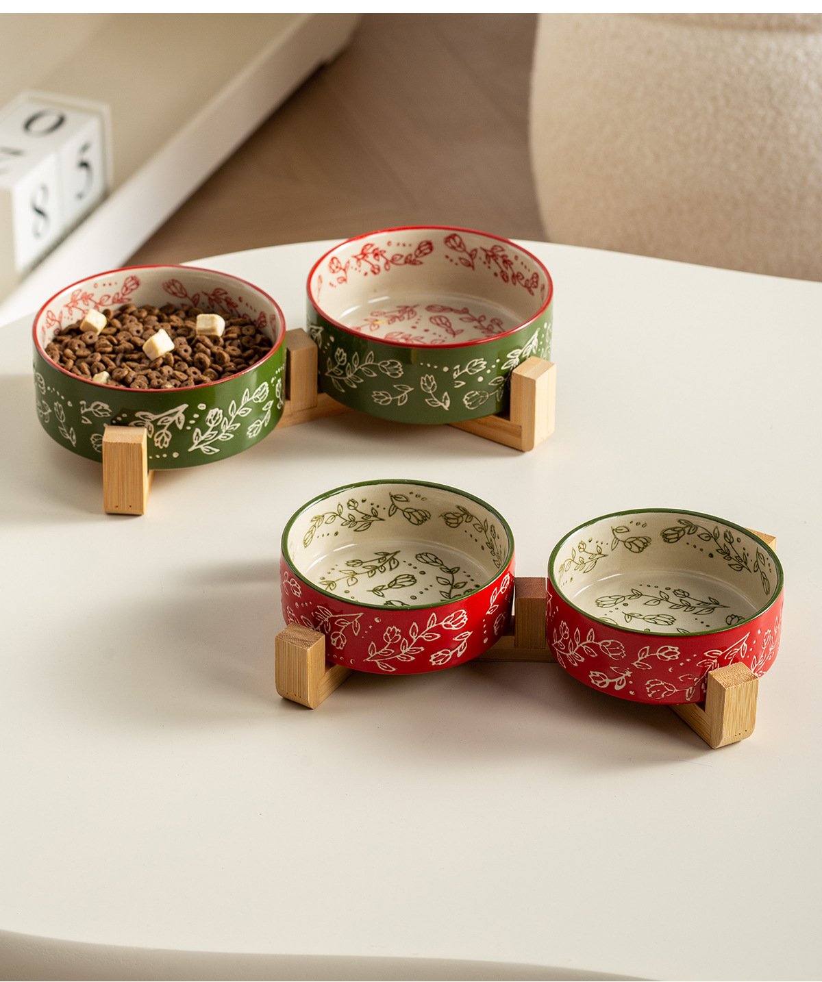 창의적인 민족 스타일 스트레이트 입 그릇 나무 랙 가정용 애완 동물 그릇 세라믹 그릇 고양이 그릇 개 그릇 고양이 마시는 개 분지