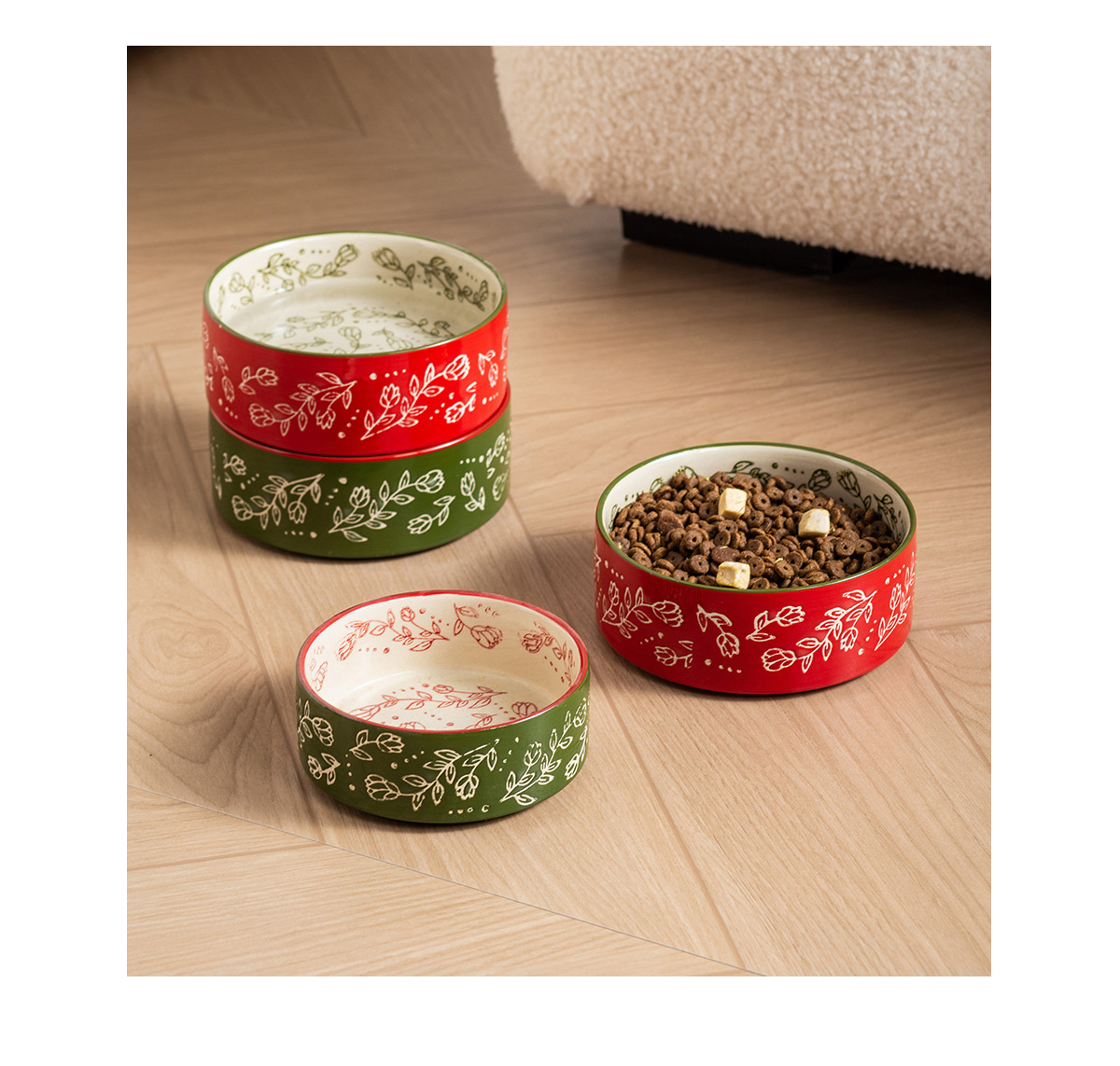 • 중형 직구 그릇 [외부 녹색] + 중형 직구 그릇 [외부 빨간색] + 이중 나무 프레임
