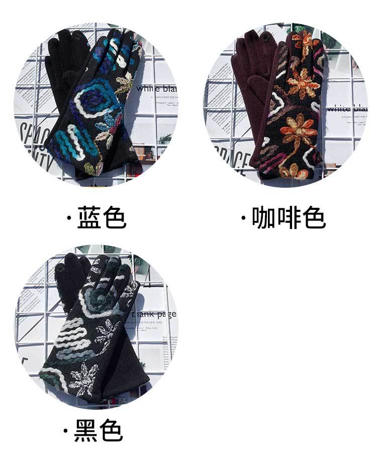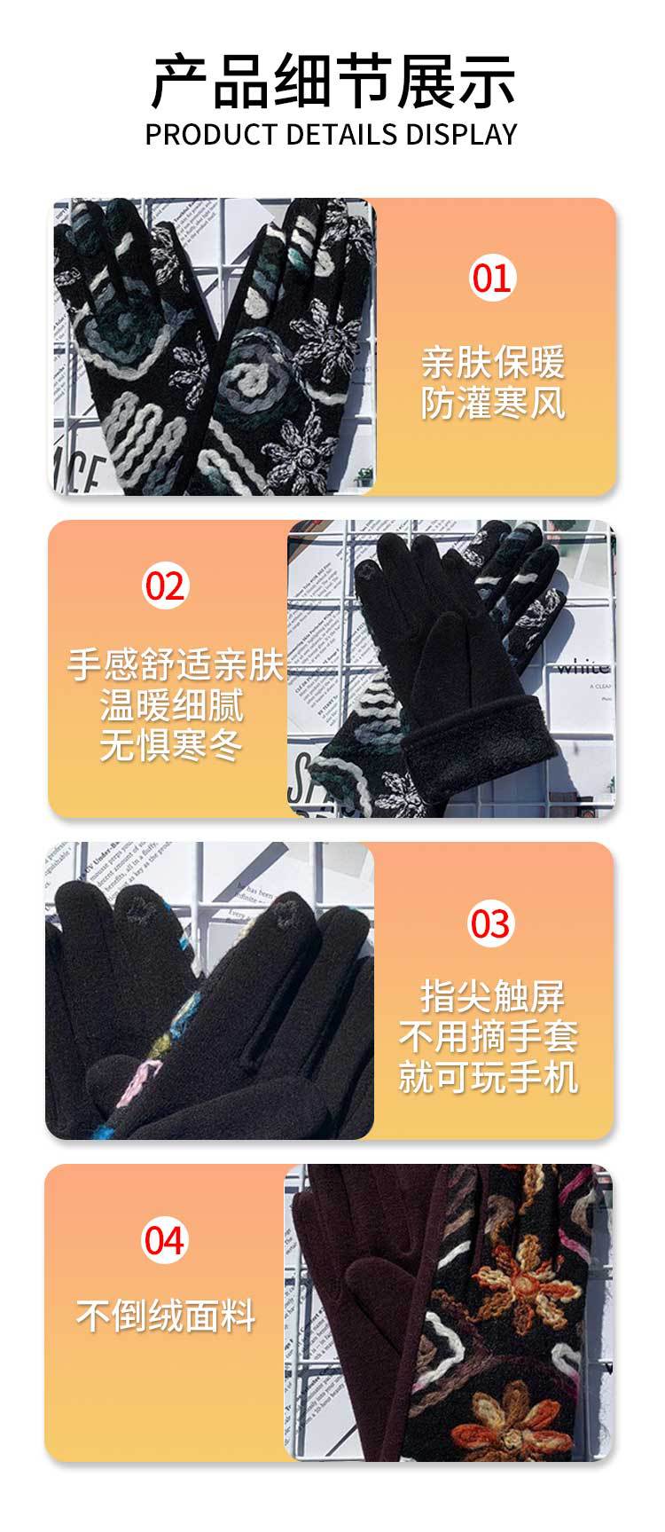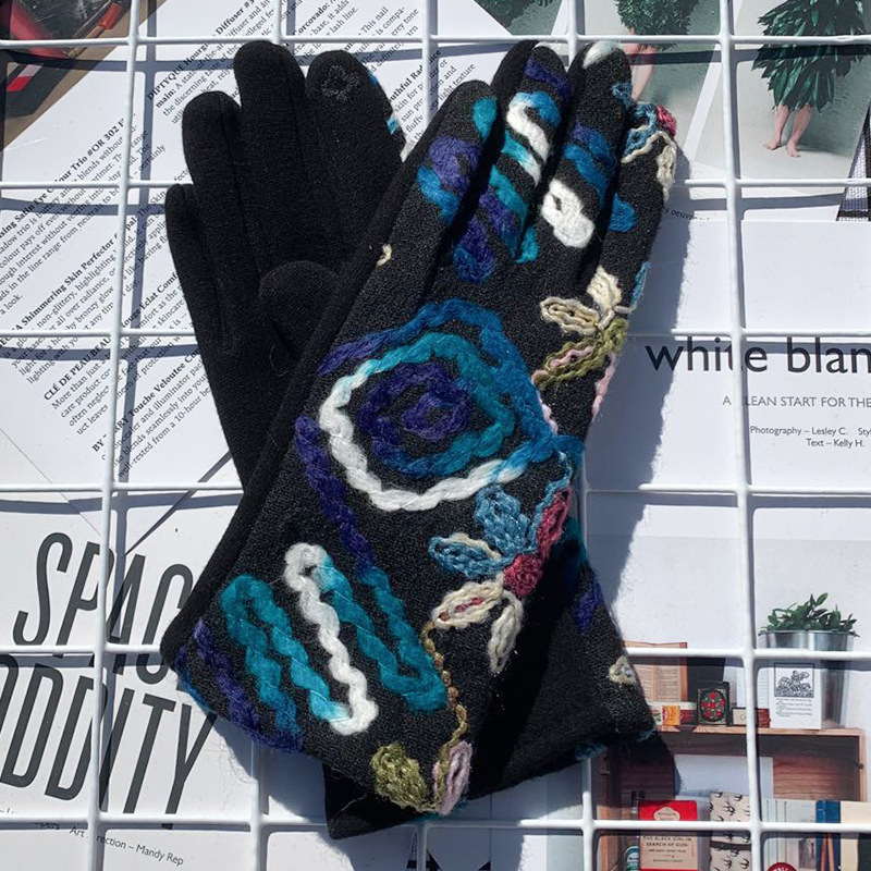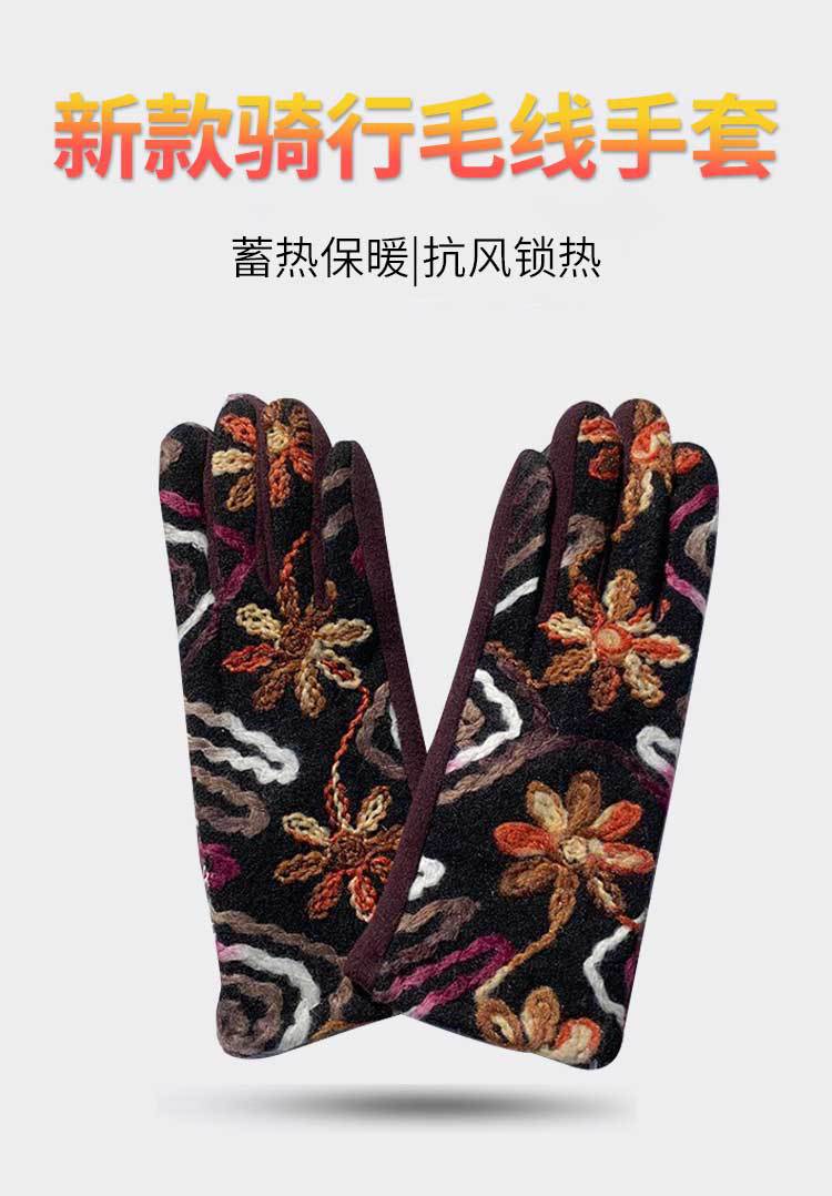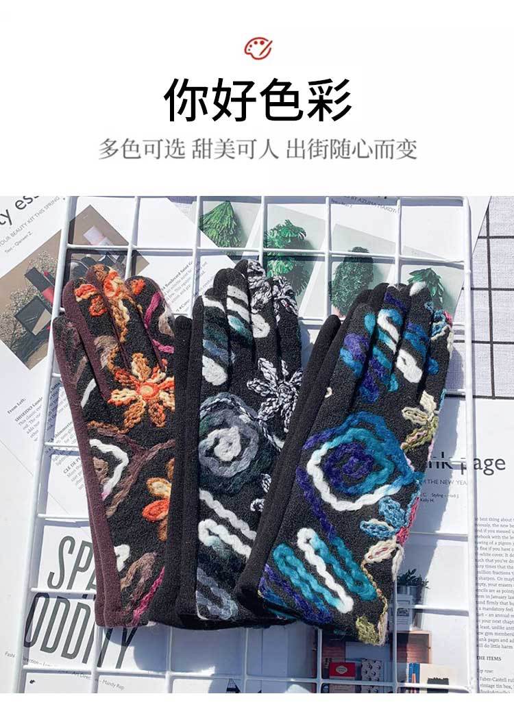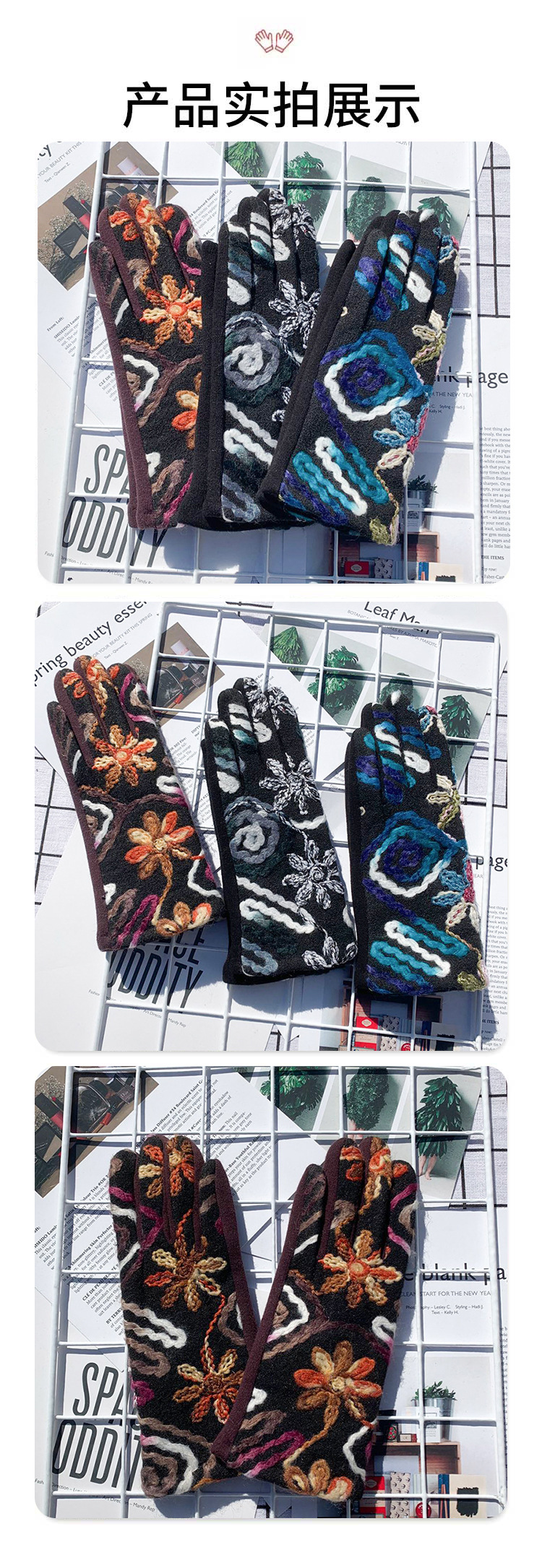 장갑 여성 패션 민족 스타일 자수 장갑 야외 따뜻한 벨벳없는 장갑 승마 손가락 벨벳 장갑스토어 가기