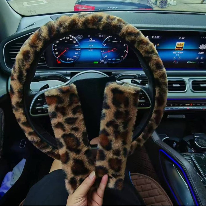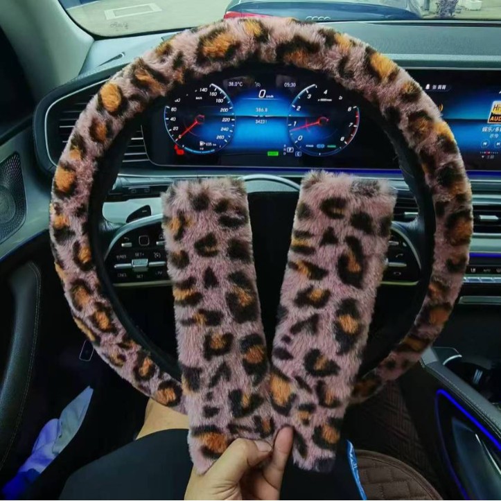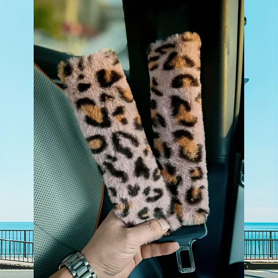 자동차 용품 초극세사 부드러운 플러시 레오파드 프린트 어깨 보호대 자동차 인테리어 안전벨트 커버 3종 세트스토어 가기