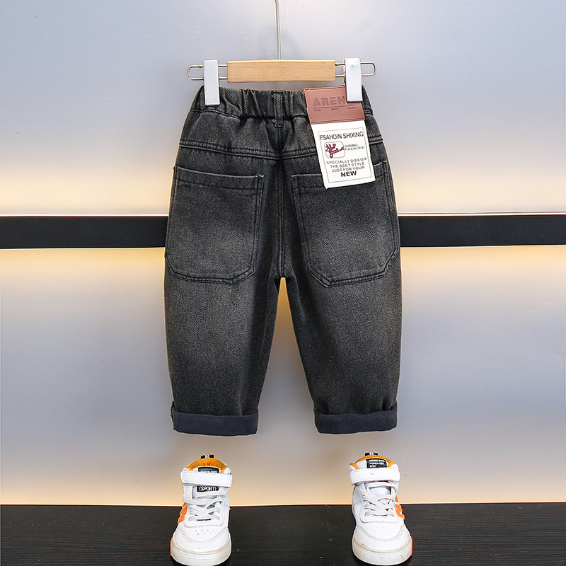 남아용 한국 스타일 라벨 청바지, 봄 가을 신상 스타일, 중소형 남아용 멋진 바지, 크로스보더 남아용 아동 바지스토어 가기