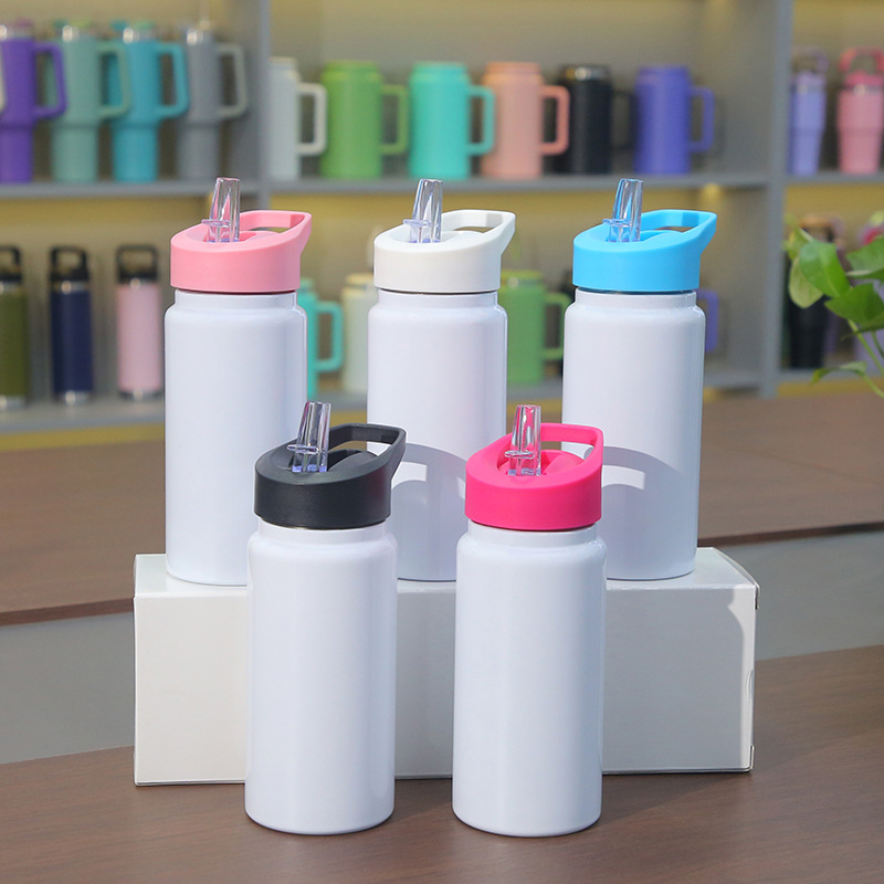 국경 폭발 더블 레이어 스테인레스 스틸 보온병 승화 휴대용 스포츠 물 컵 멀티 컬러 밀짚 뚜껑 공간 냄비