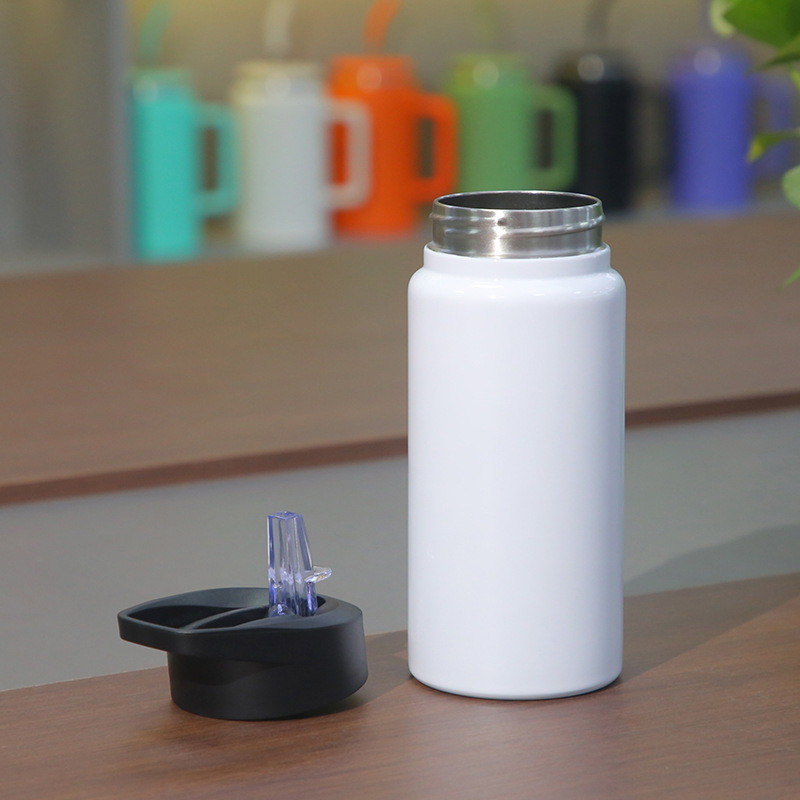 국경 폭발 더블 레이어 스테인레스 스틸 보온병 승화 휴대용 스포츠 물 컵 멀티 컬러 밀짚 뚜껑 공간 냄비스토어 가기