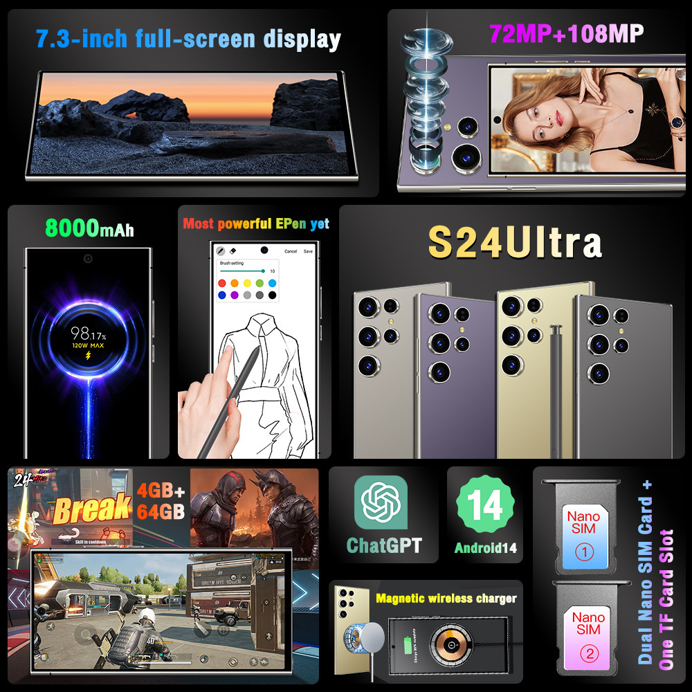 S24Ultra 국경 안드로이드 전화 3G 스마트 OTG 전화 6.75 인치 2 16 대외 무역 재고 저렴한 가격 세대스토어 가기