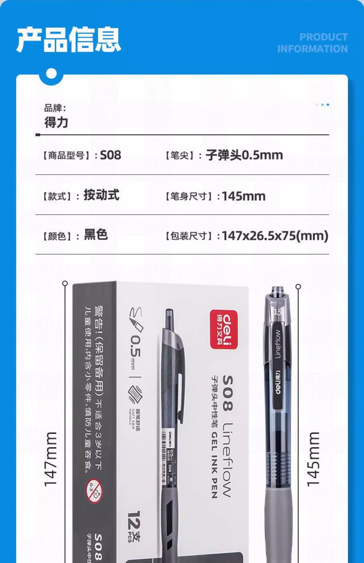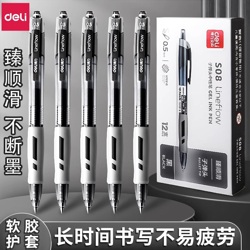 델리 S08 프레스 젤 펜 0.5 전구 헤드 펜 젤 펜 사무실 문구 프레스 서명 펜 펜스토어 가기