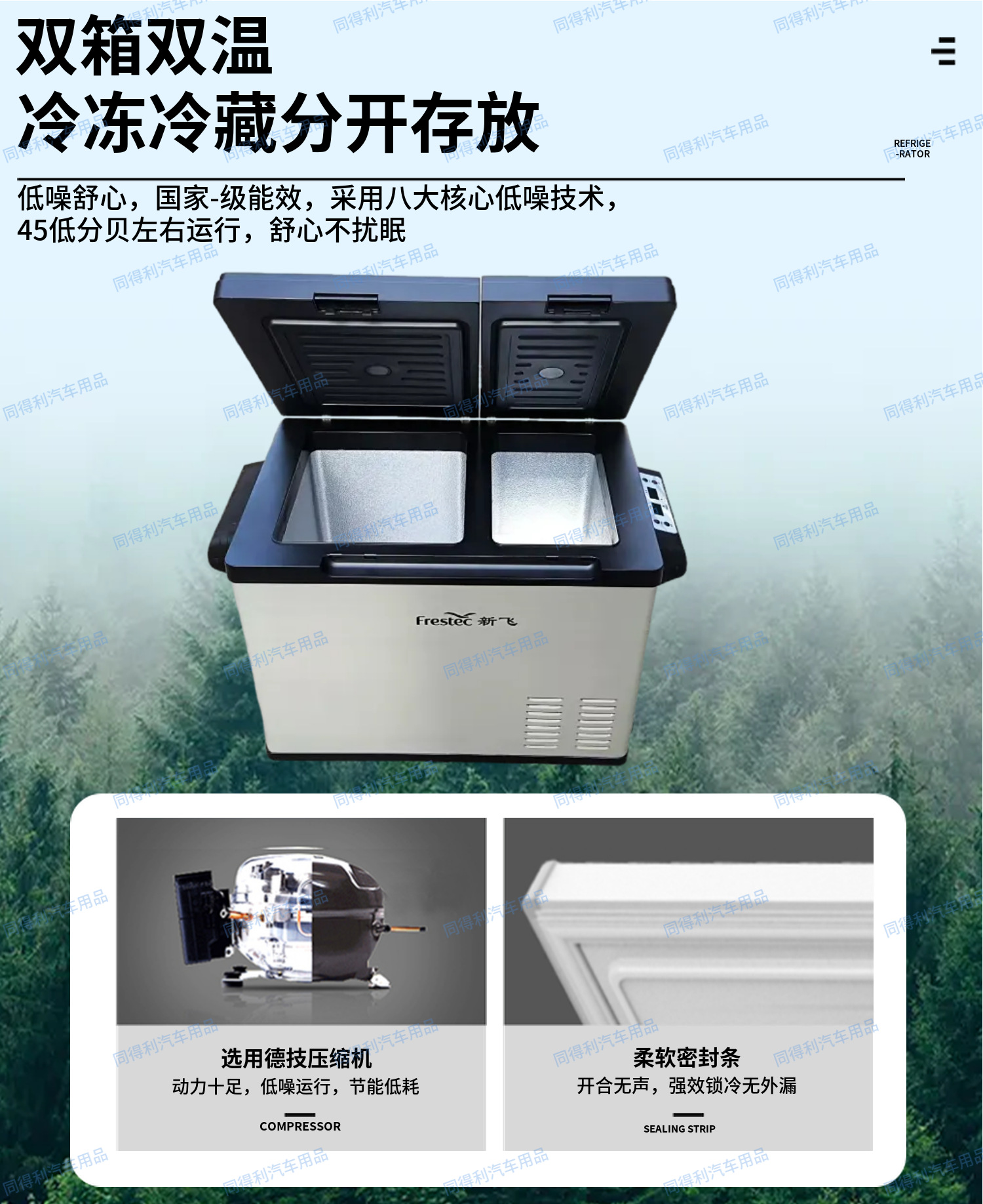 새로운 Feifei 압축기 냉장고 자동차 홈 이중 목적 트럭 냉장고 냉동 Hyperbolic Zone 이중 온도 냉장고 12V2