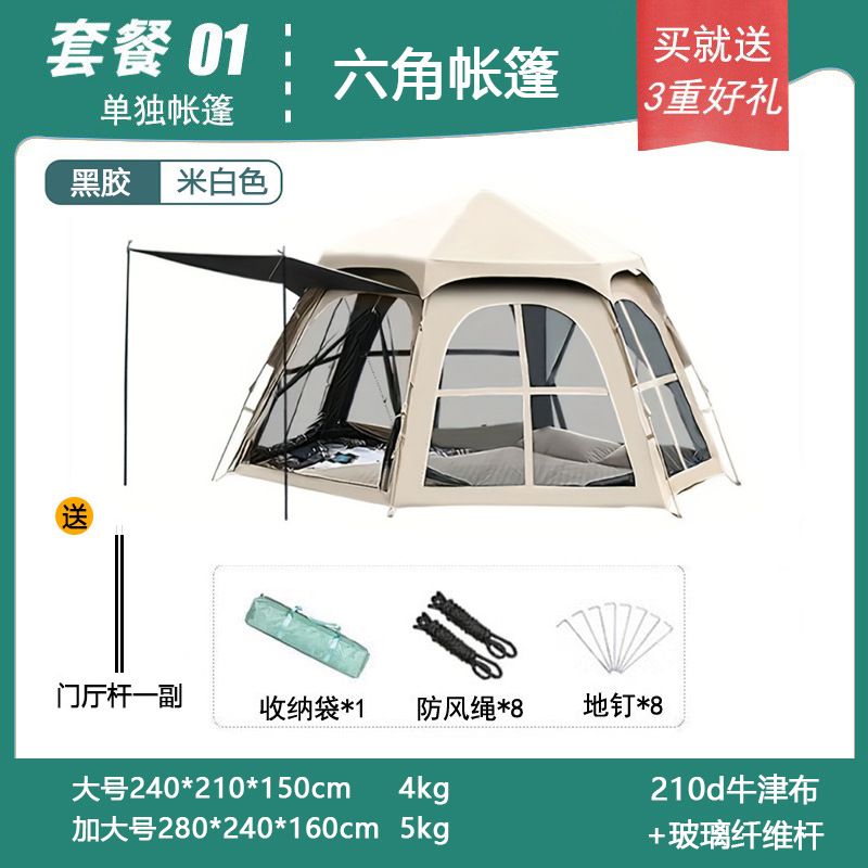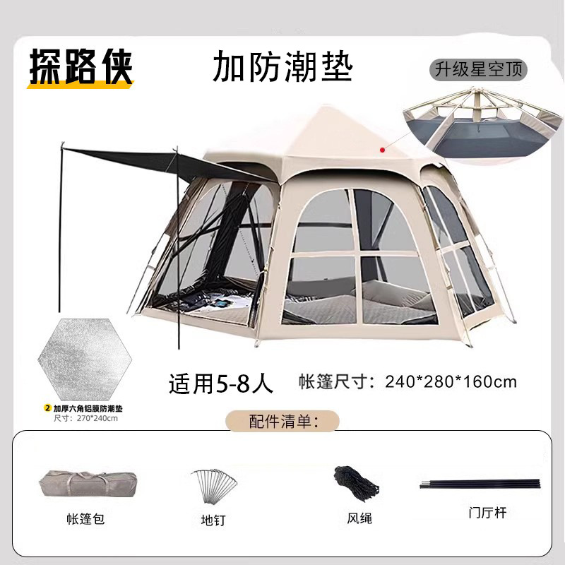 야외 캠핑 텐트, 블랙코팅 자외선 차단 및 방수 기능, 6인용 자동 개방형, 일체형 휴대용스토어 가기