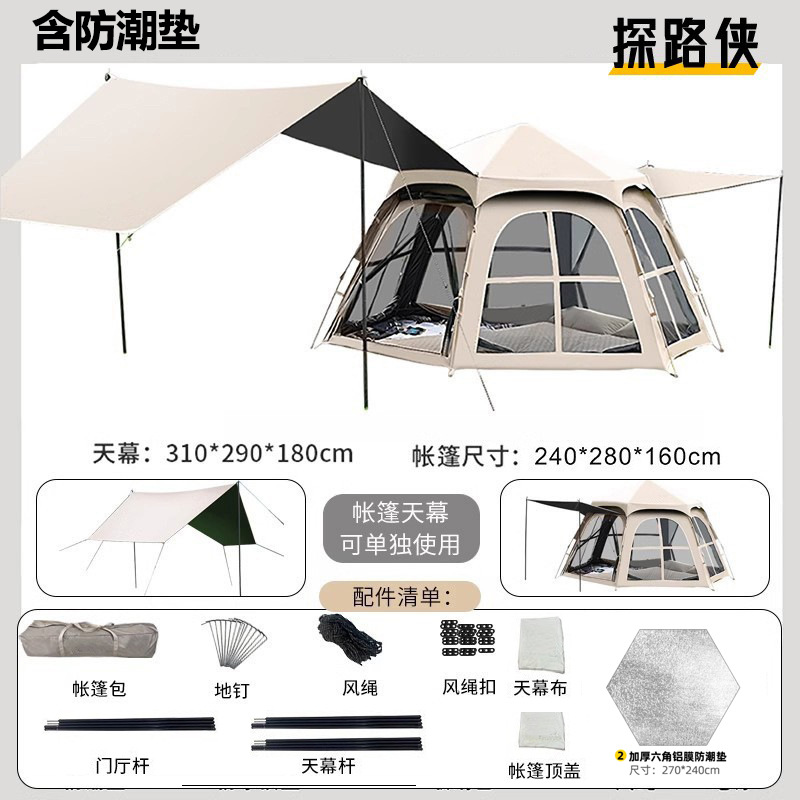 • 초대형 [텐트 + 캐노피 2-in-1 + 방습 매트] 양문형 4창 - 두꺼운 블랙 코팅