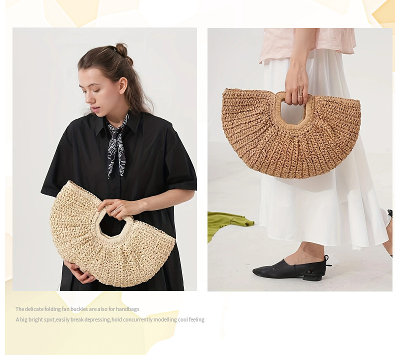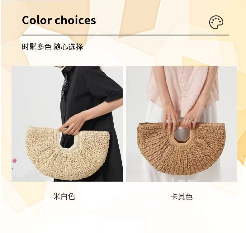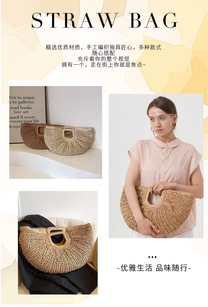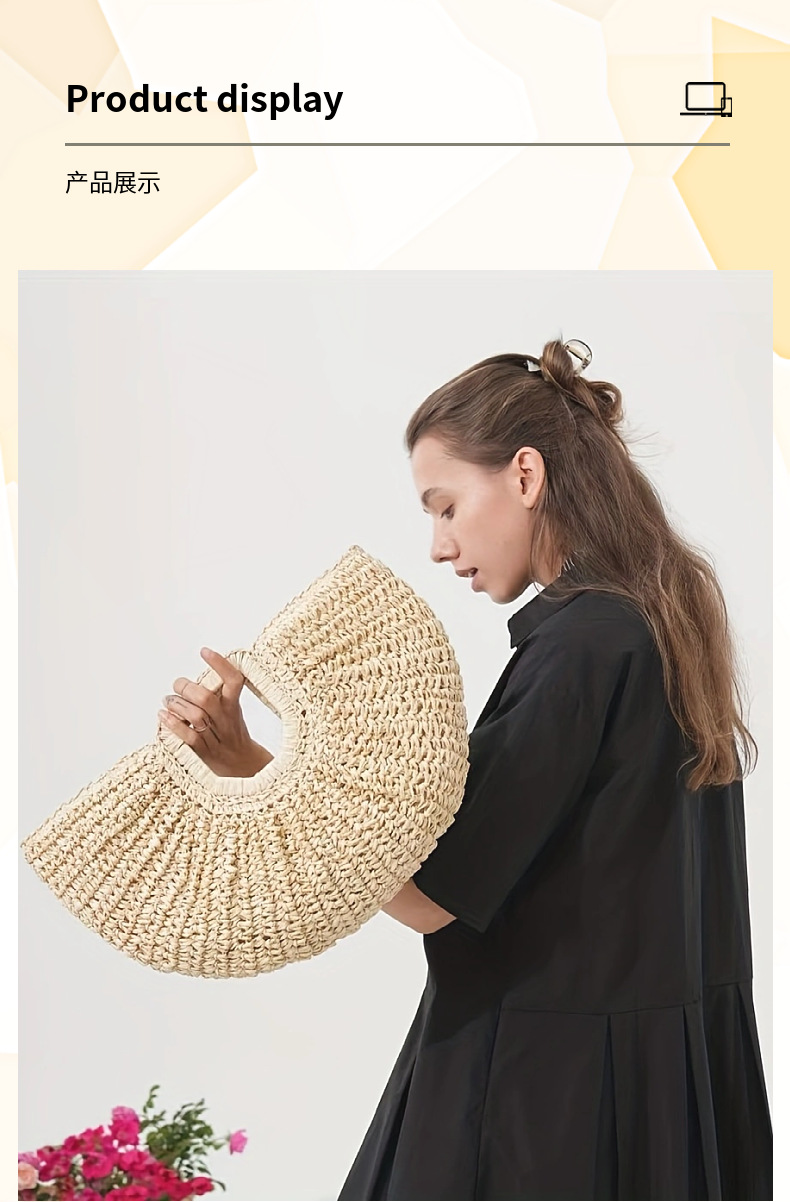 단색 손으로 들고 다닐 수 있는 밀짚가방, 대용량, 다용도 손으로 짠 가방, 고급 핸드백, 해변 휴가용 비치백스토어 가기