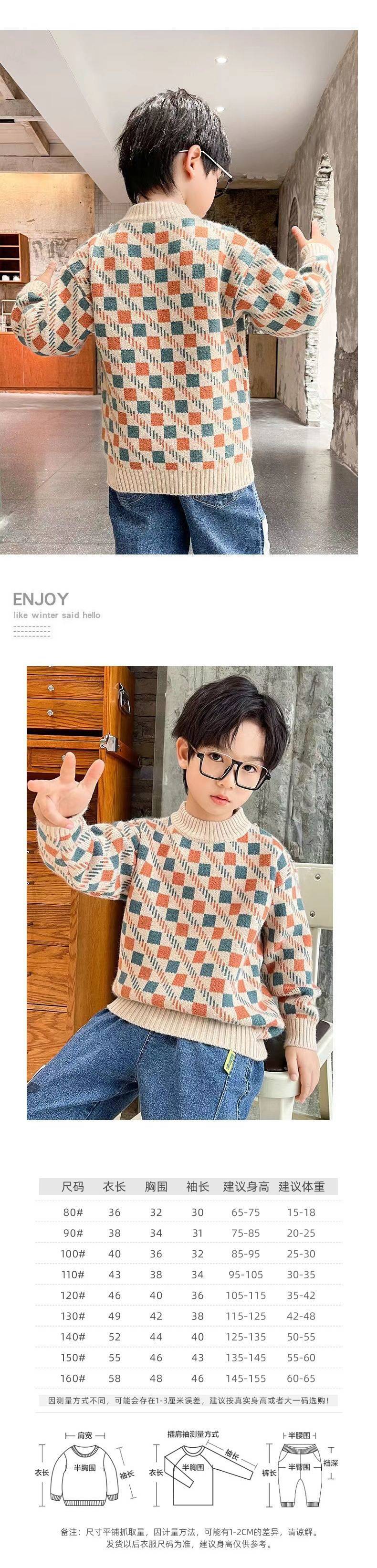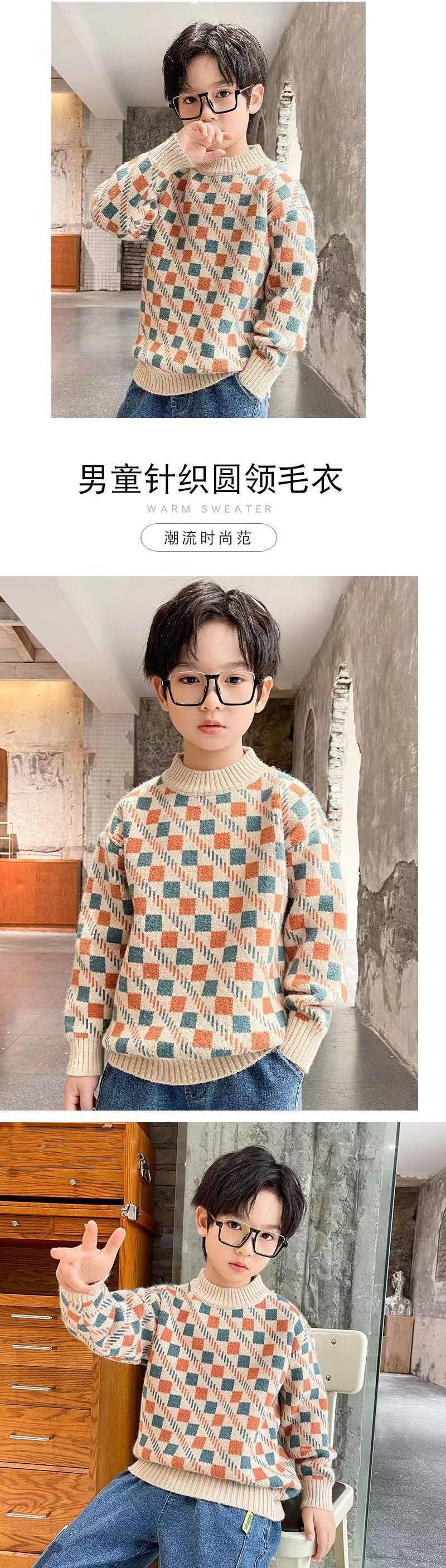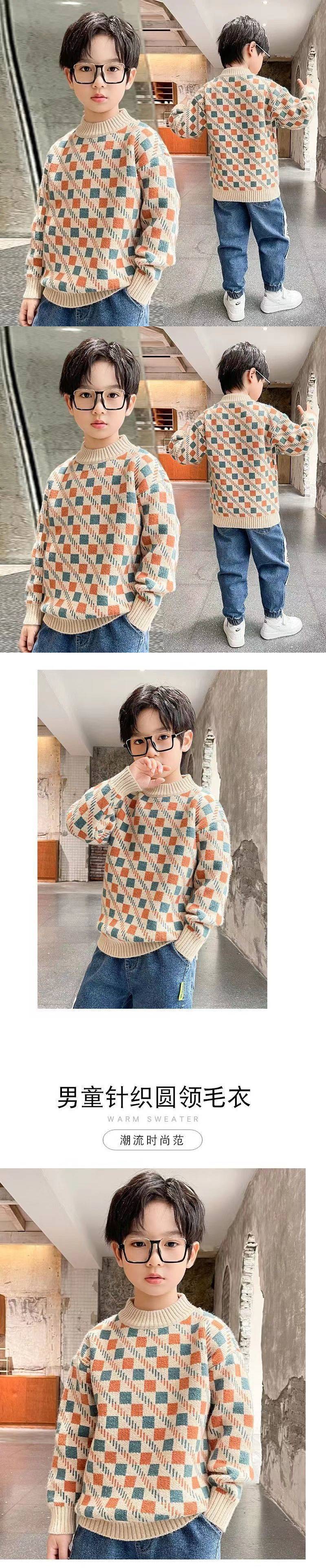 男童格子毛衣2022新款小童洋气儿童秋冬帅气针织衫宝宝春秋款上衣
