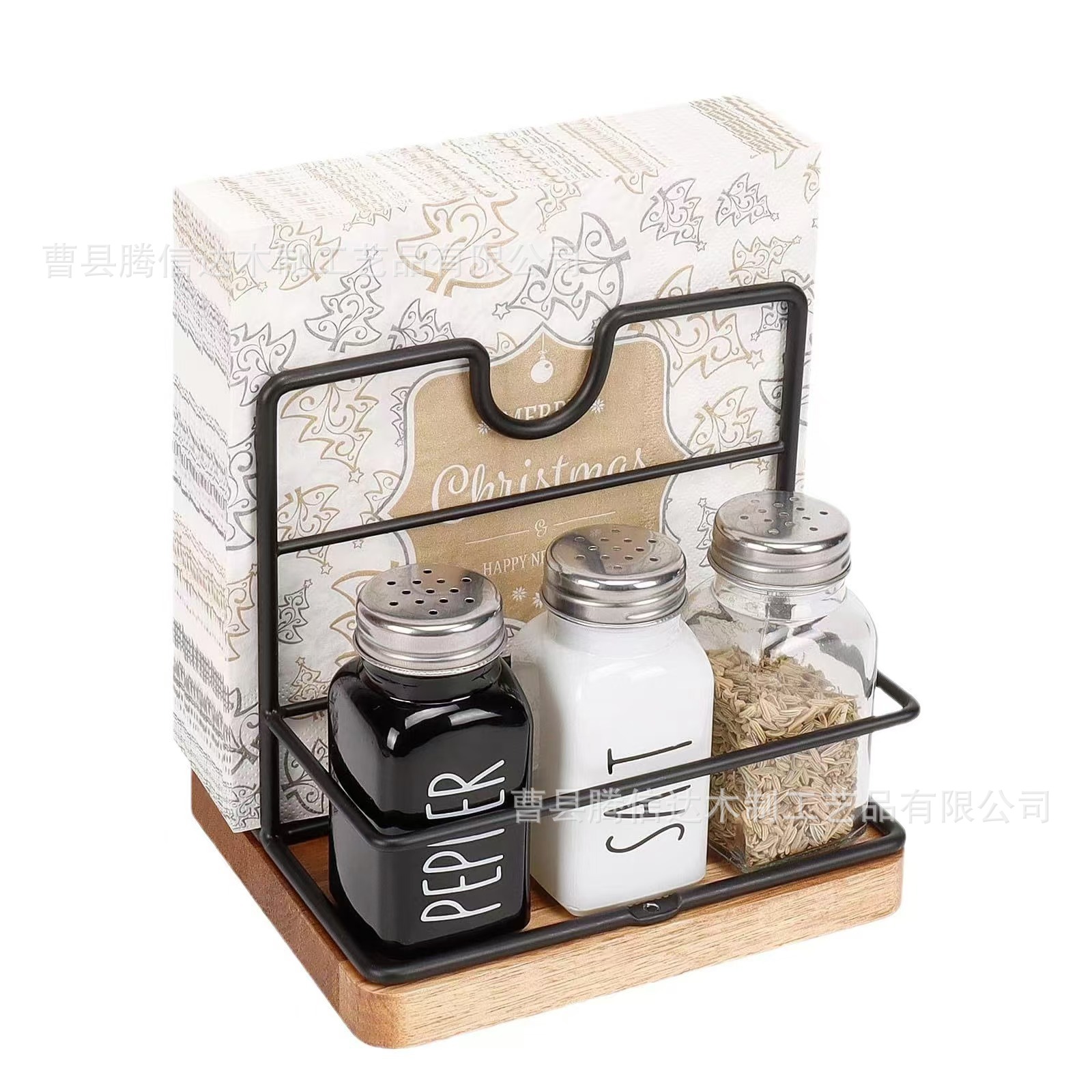 현물배송 해외배송 식탁 티슈 보관함 나무제 탁상용 양념병 보관함 가정용 다용도 보관함