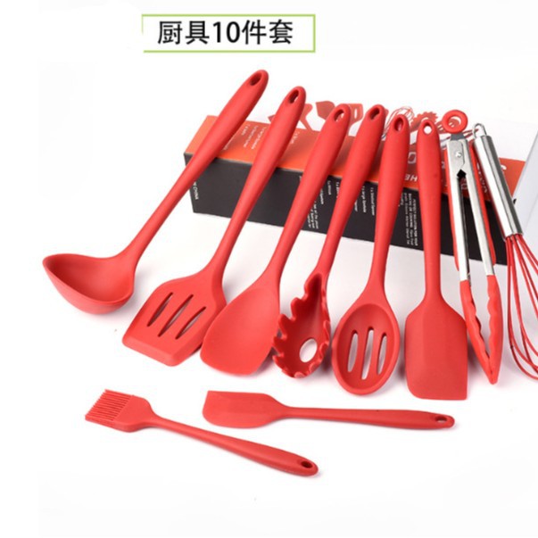 아마존 실리콘 주방용품 10 개 세트 주방 도구 가정용 실리콘 주걱 수프 스푼 오일 브러시 식품 클립 스크레이퍼