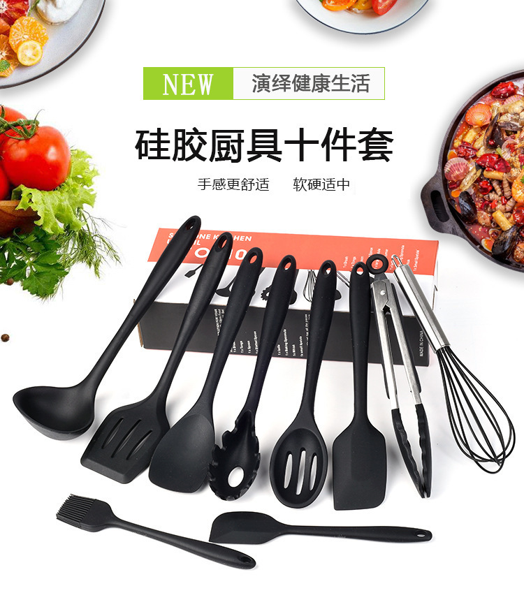 아마존 실리콘 주방용품 10 개 세트 주방 도구 가정용 실리콘 주걱 수프 스푼 오일 브러시 식품 클립 스크레이퍼스토어 가기