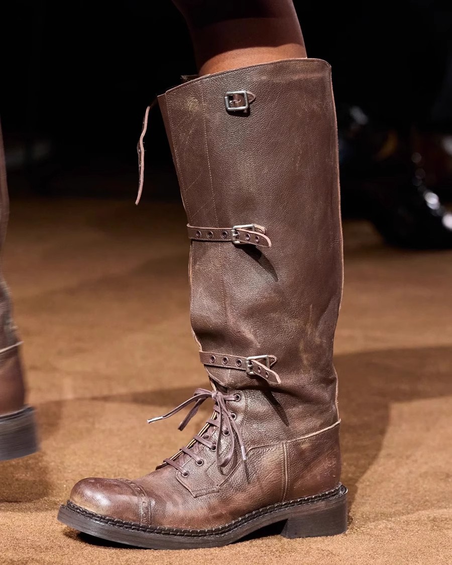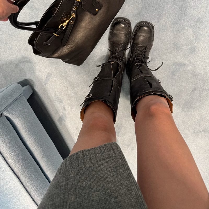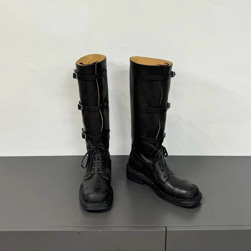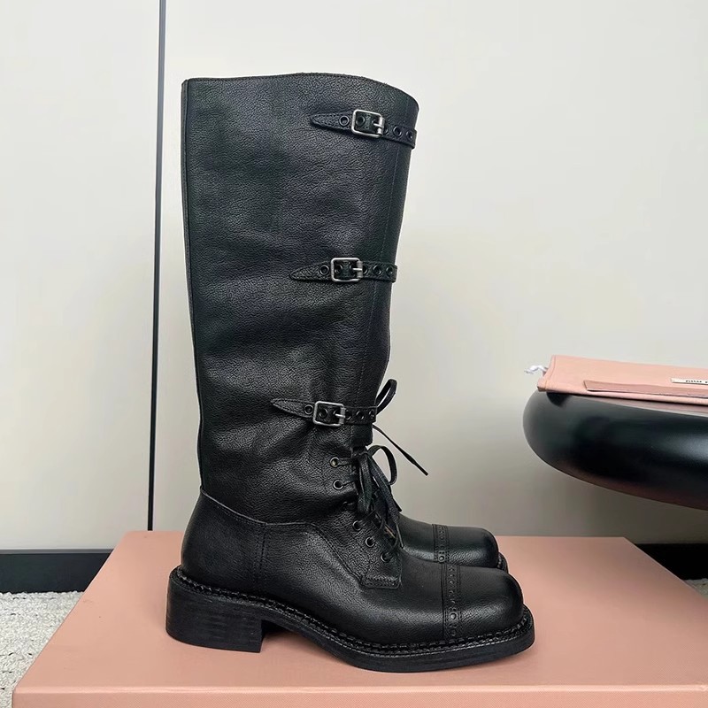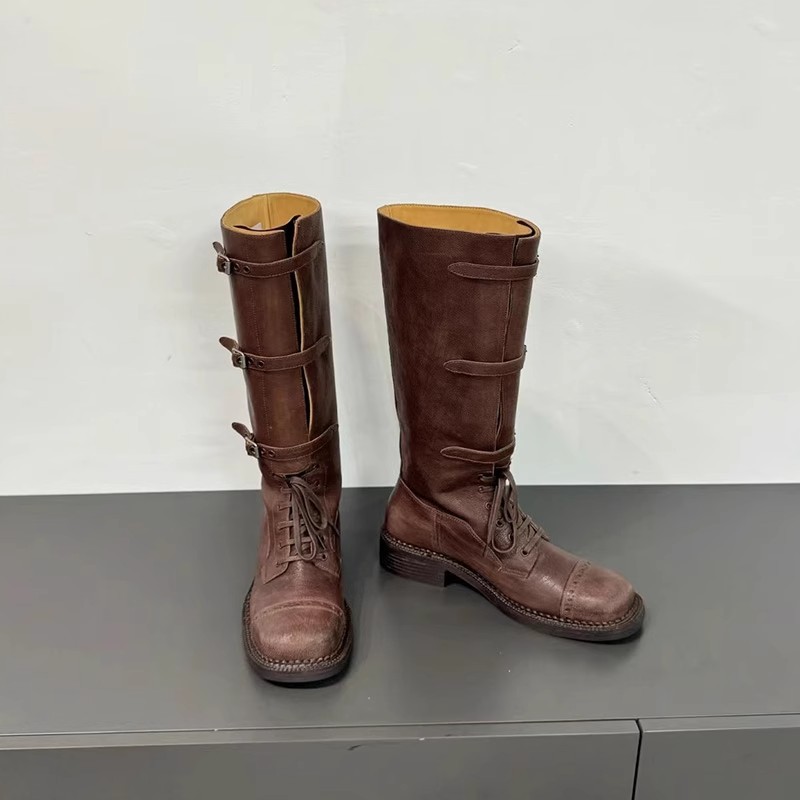 [재고 있음 4143] 여성용 대형 2025 가을 겨울 신상 레트로 영국 마틴 부츠 스퀘어 토 레이스 업 하이 부츠