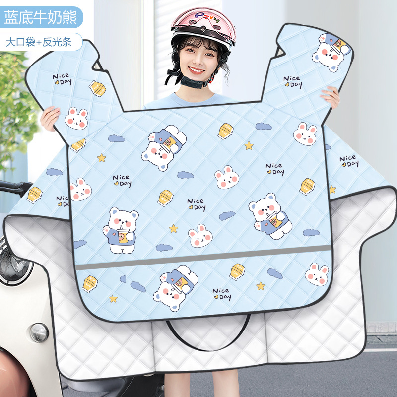 • [업그레이드된 반사 스트립 대형 측면 날개 + 포켓 그레이 + 방수] 파란색 배경 밀크 베어