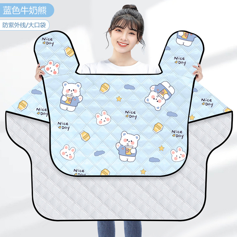 • [큰 옆날개 + 방수, 자외선 차단 + 포켓] 파란색 배경의 밀크베어