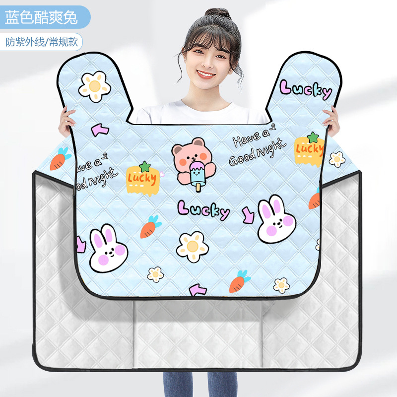 • [큰 옆날개 + 방수, 자외선 차단 + 포켓] 파란색 배경 토끼곰