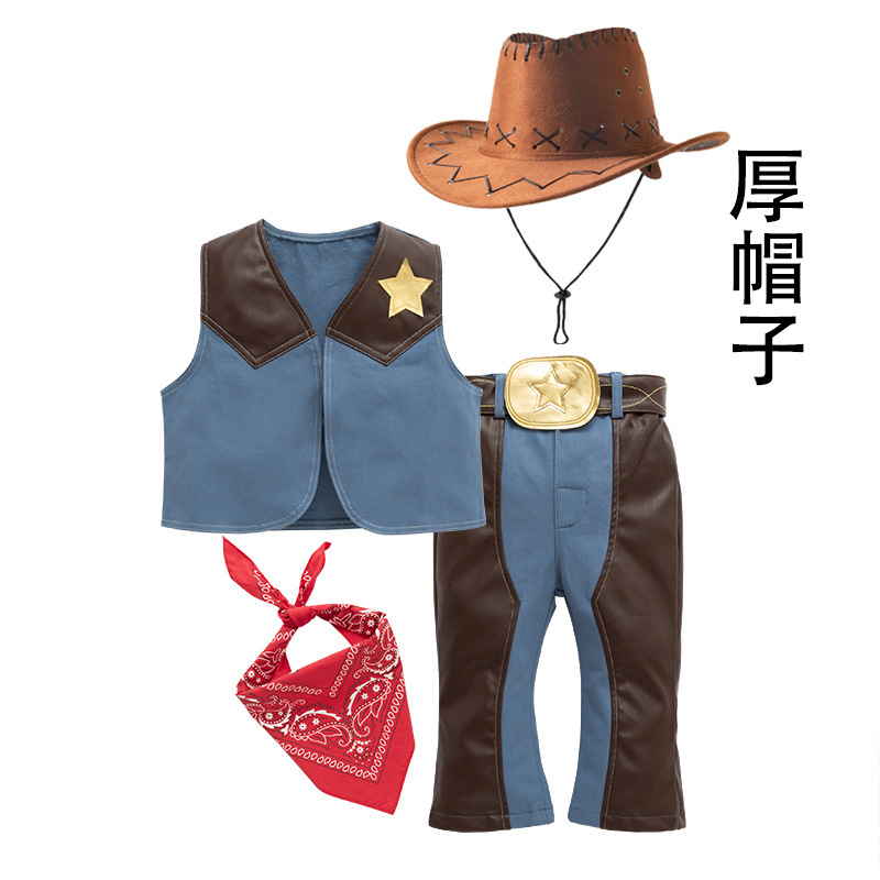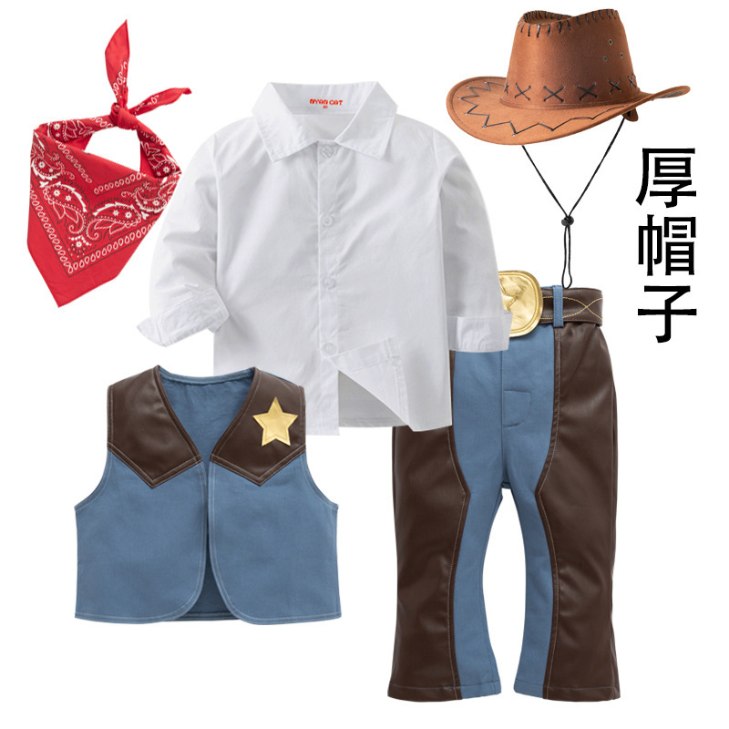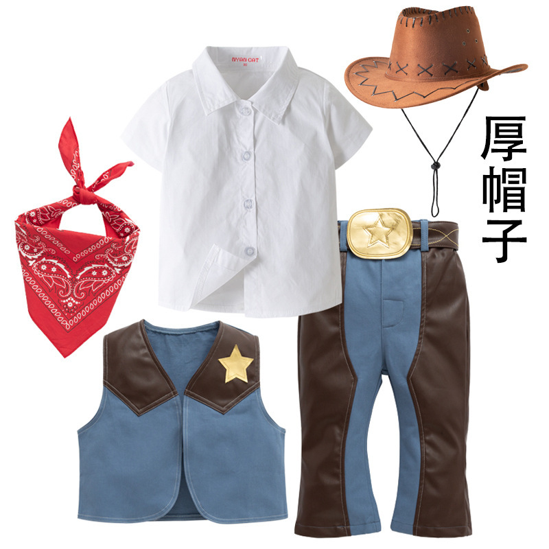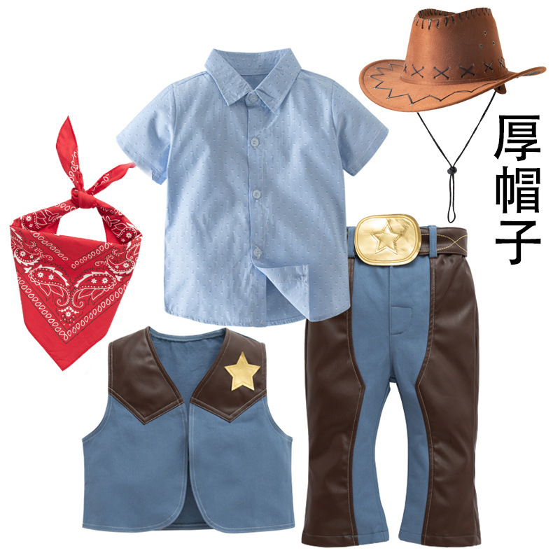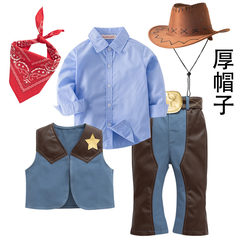 서양 데님 세트 소년 및 어린이 축제 공연 원피스 코스프레 세트 어린이 세트 4 피스 세트