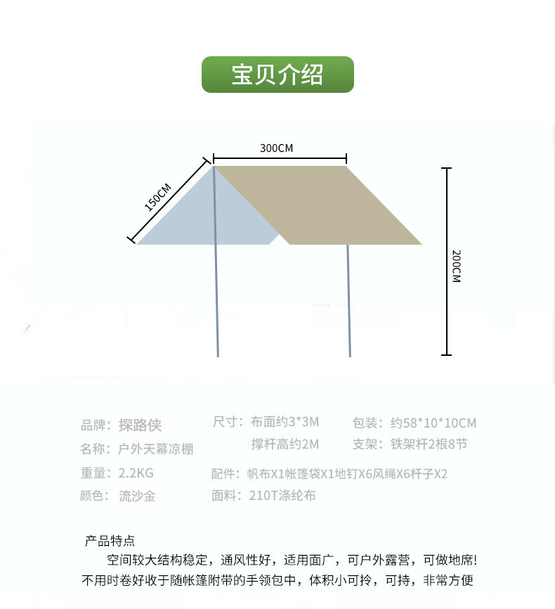 • 무료 액세서리: 바닥 못 4개 + 방풍 로프 4개 + 핸드백