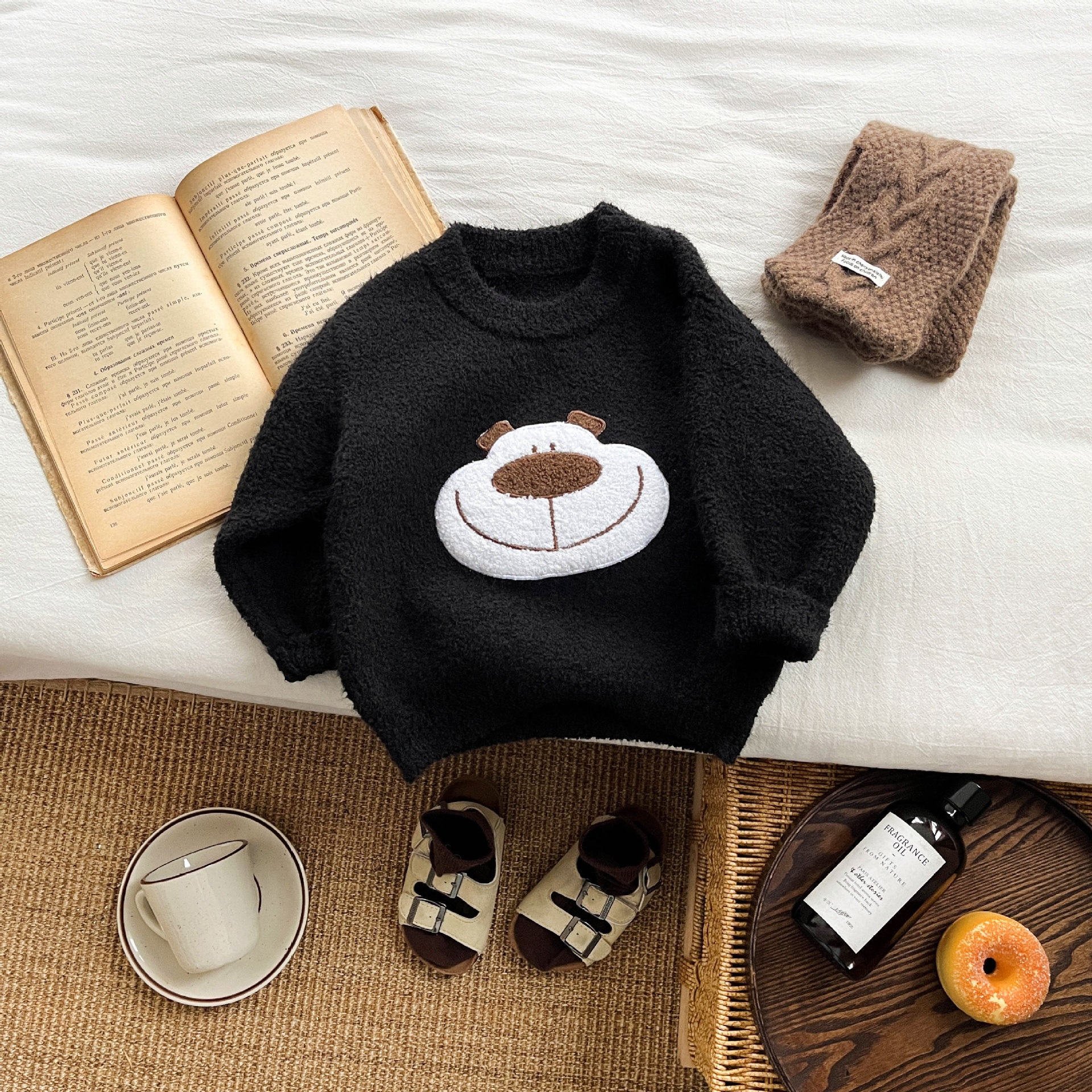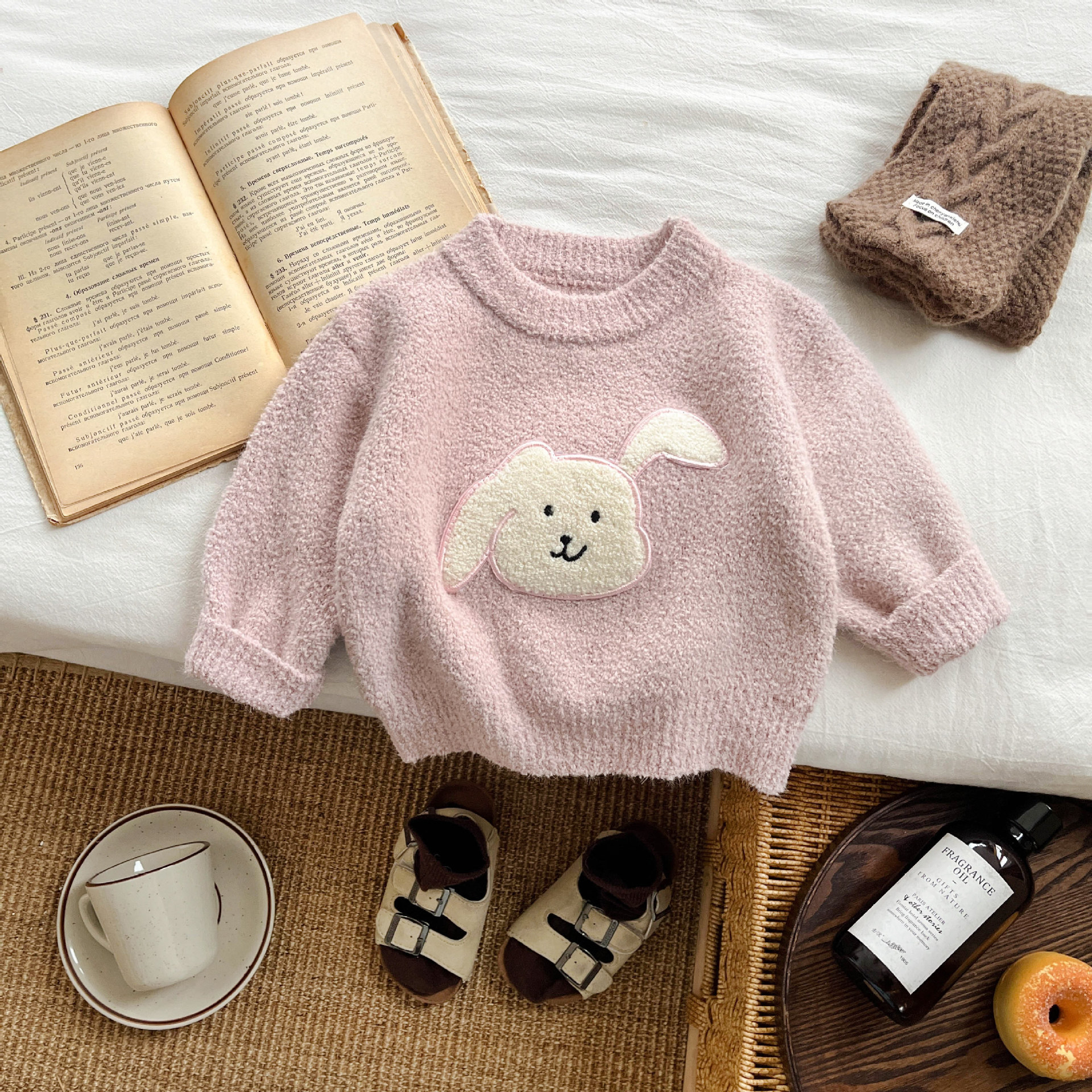 한국 스타일 소녀의 가을과 겨울 봉제 부드러운 왁스 스웨터 서양식 아기 귀여운 만화 두꺼운 풀오버 따뜻한 니트 스웨터